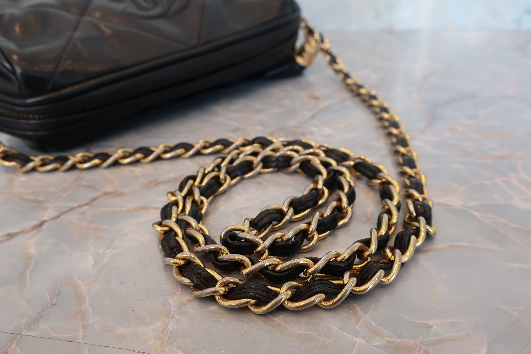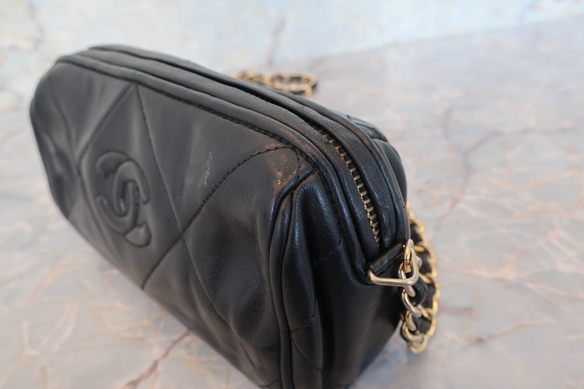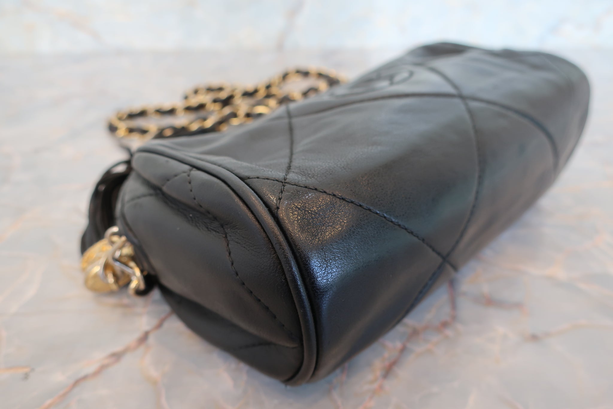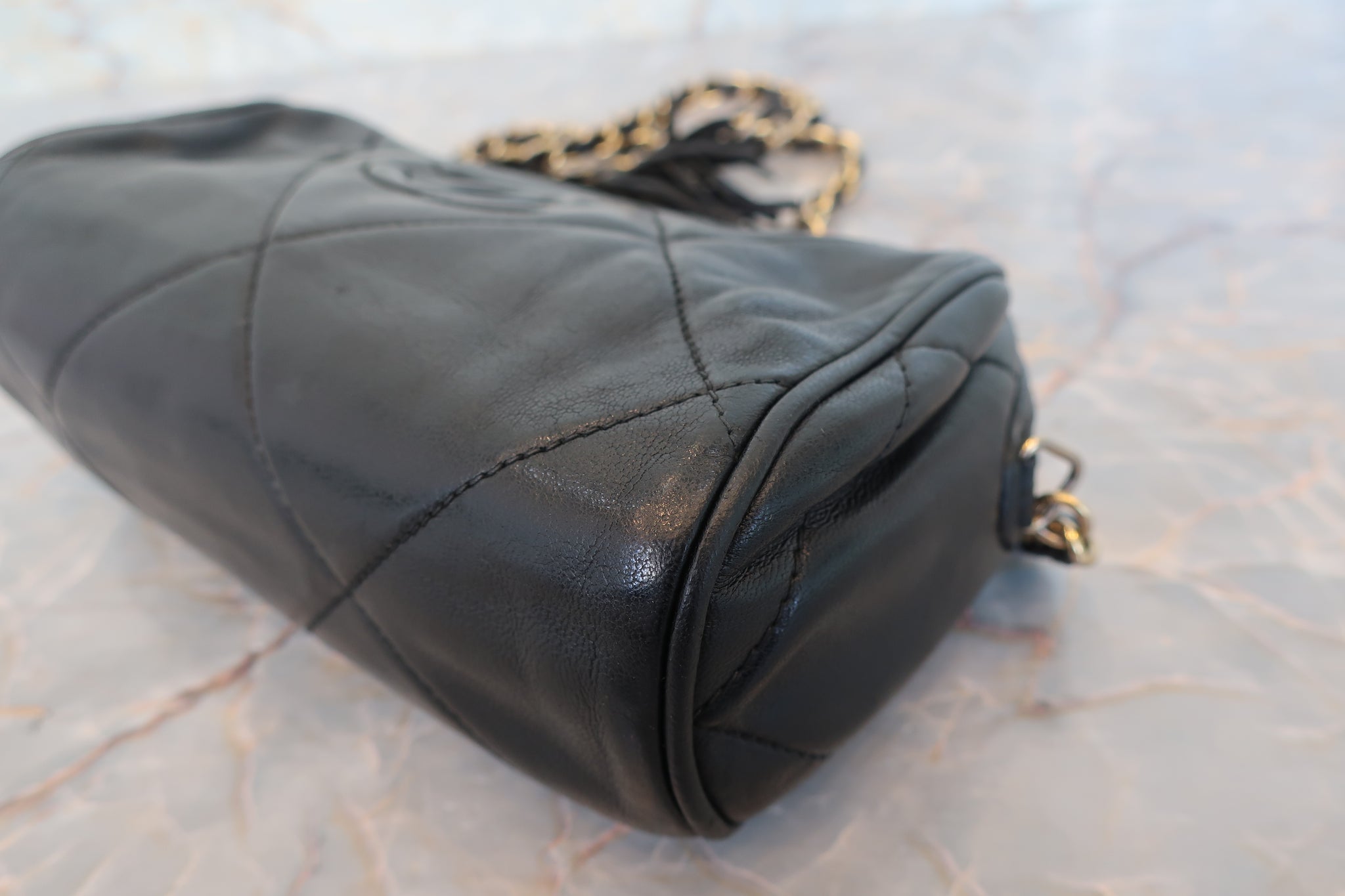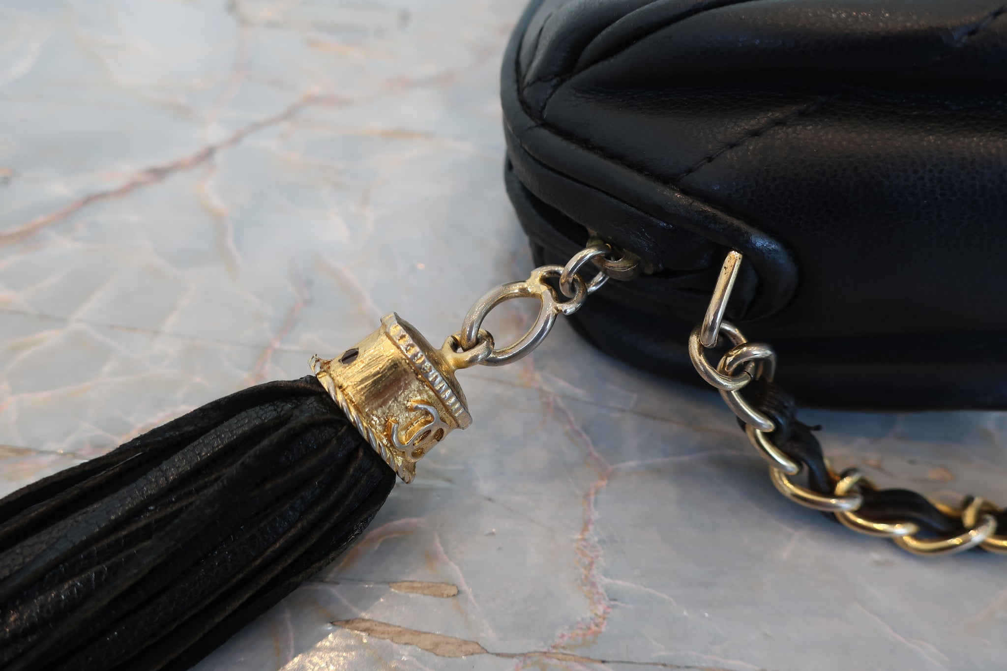 CHANEL/シャネル ココマークフリンジチェーンショルダーバッグ ラムスキン ブラック/ゴールド金具 ショルダーバッグ 700100221