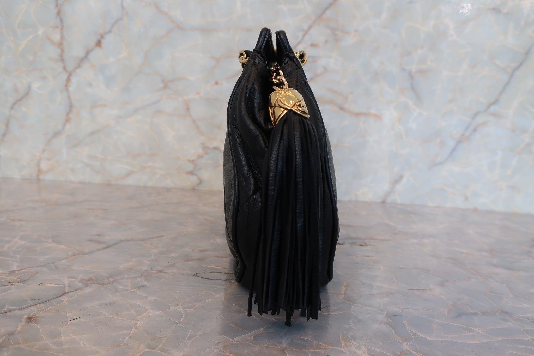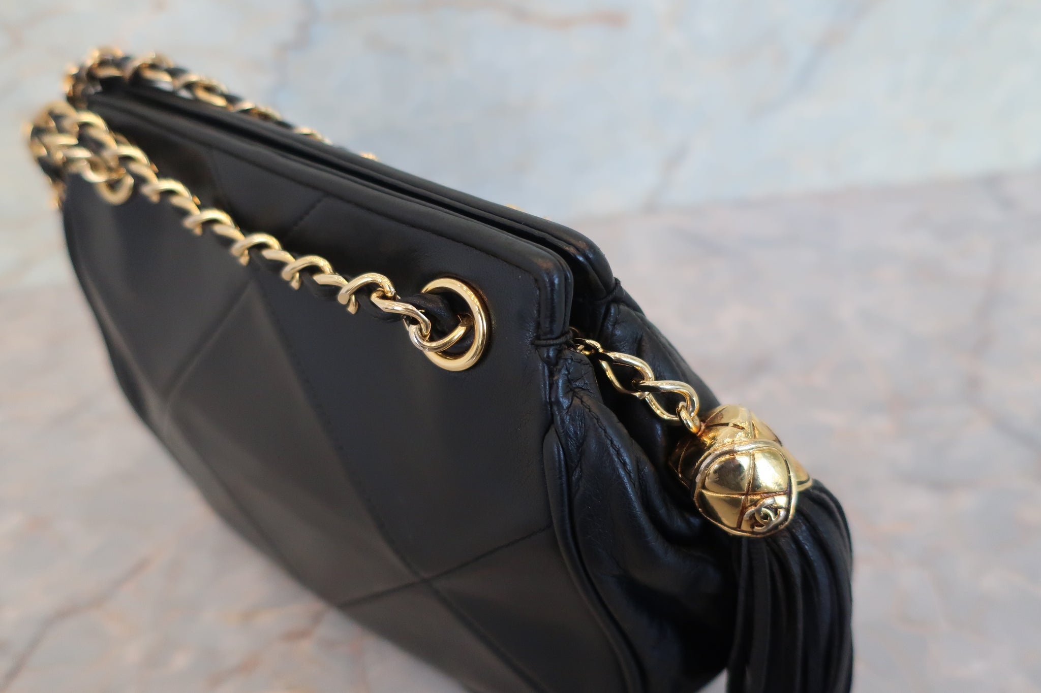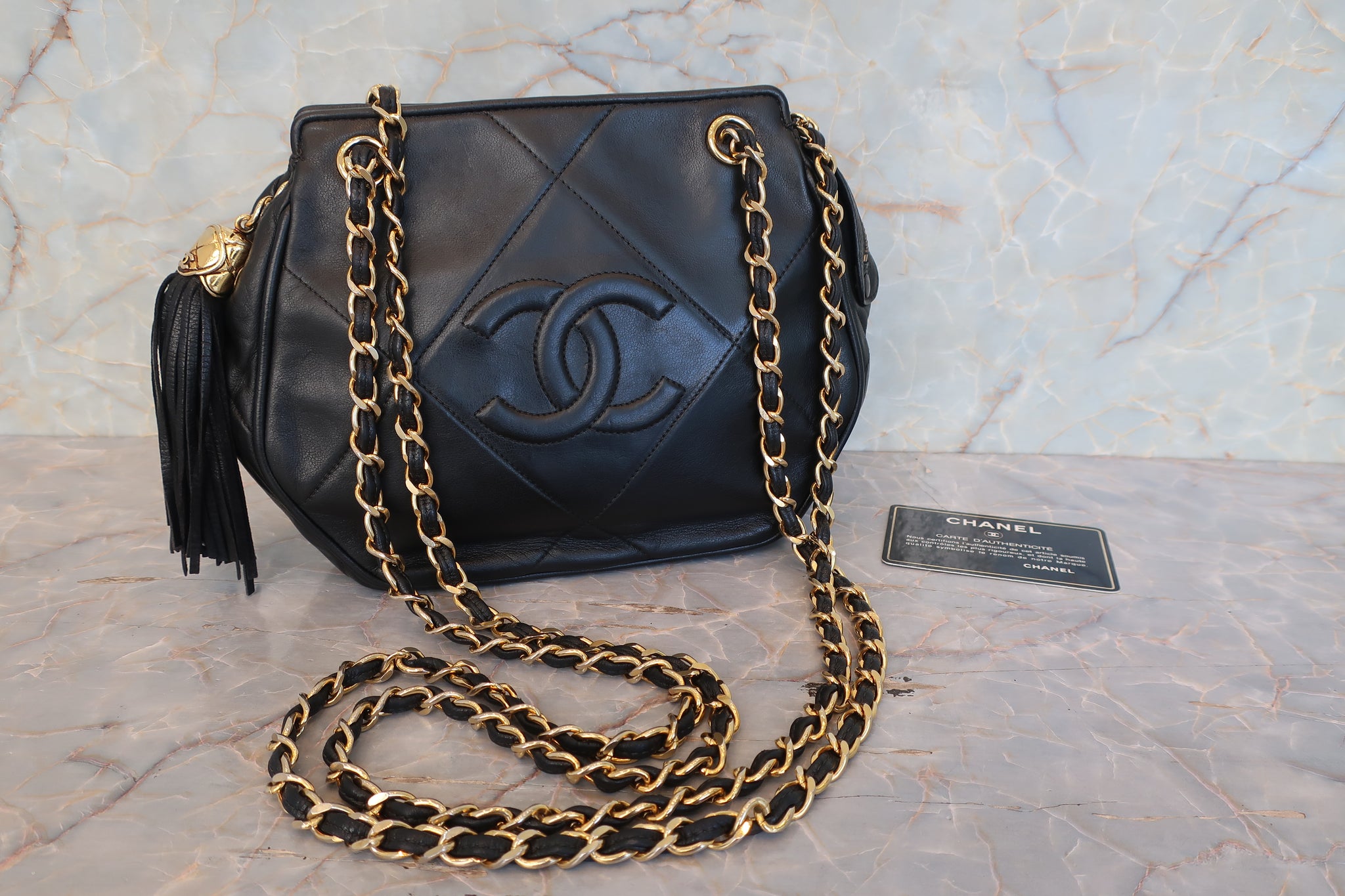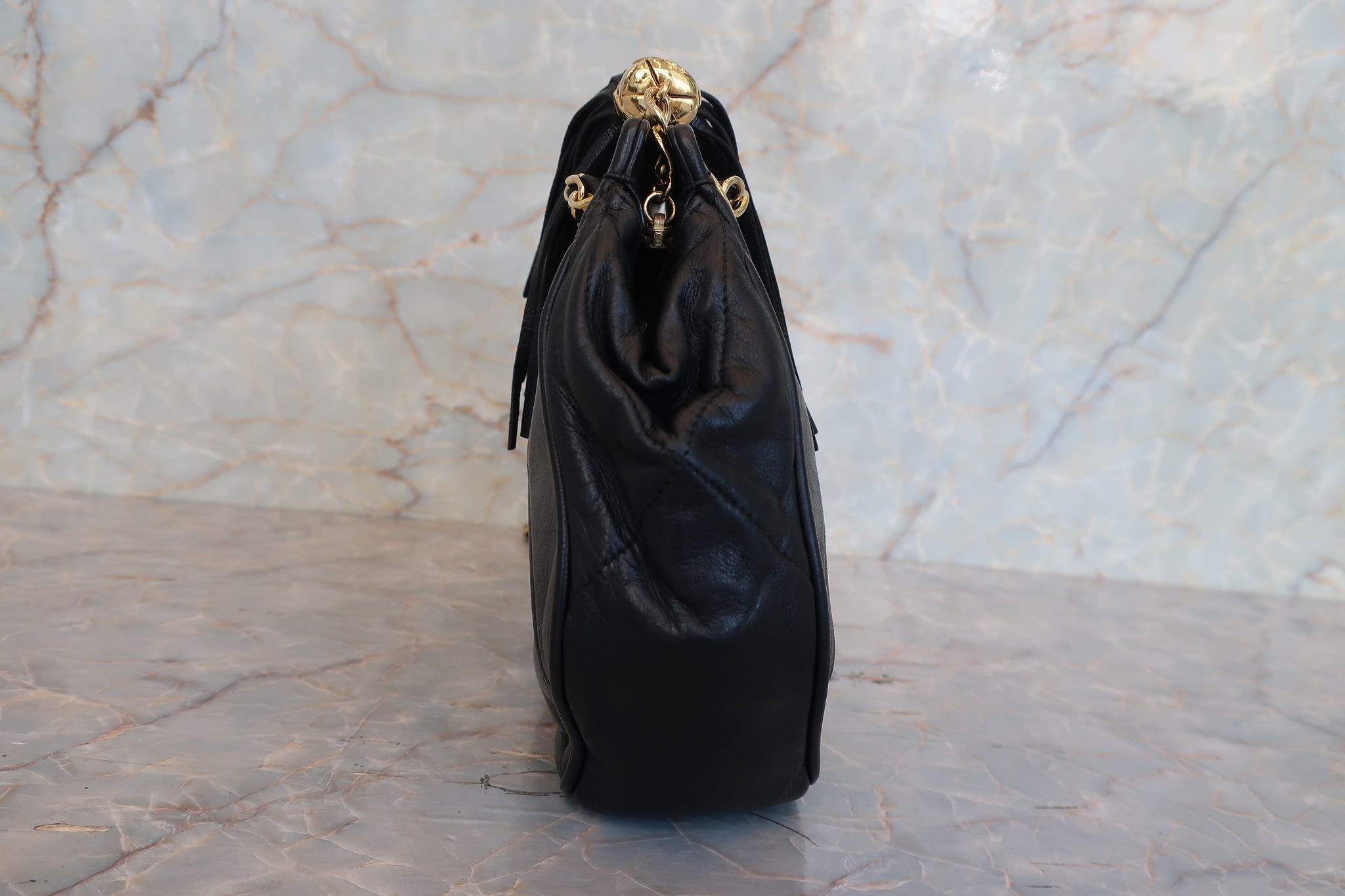 CHANEL/シャネル ココマークフリンジチェーンショルダーバッグ ラムスキン ブラック/ゴールド金具 ショルダーバッグ 800010014