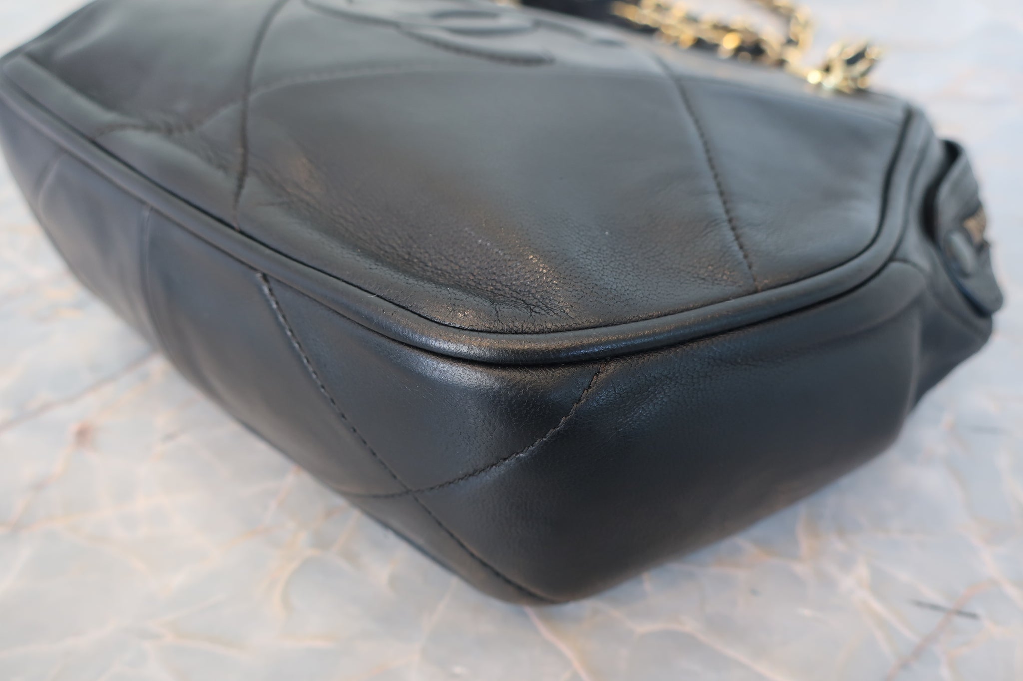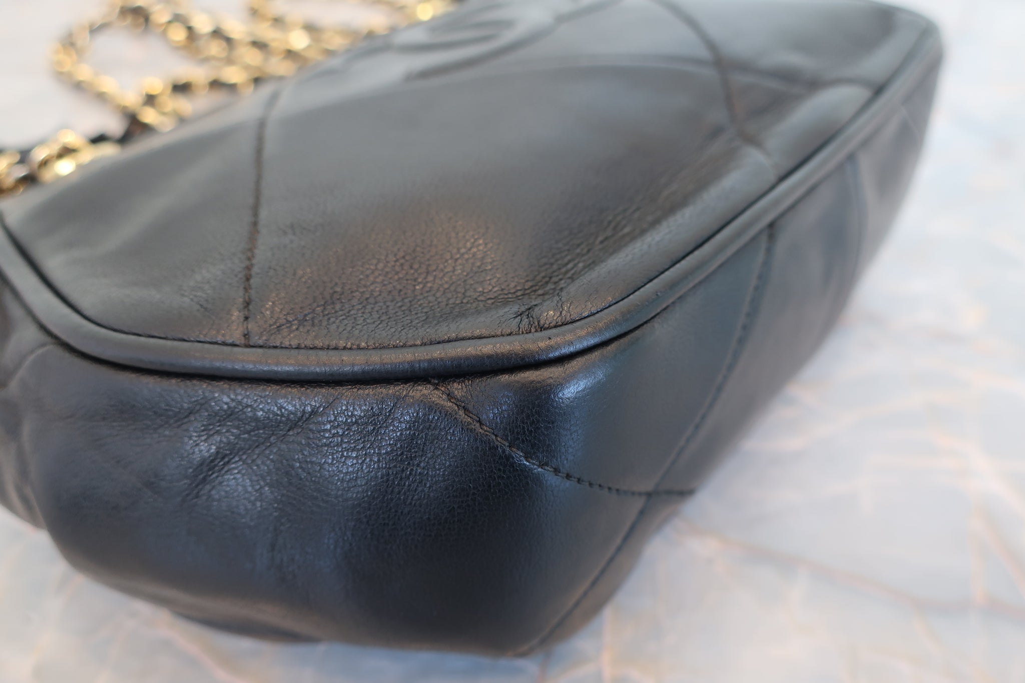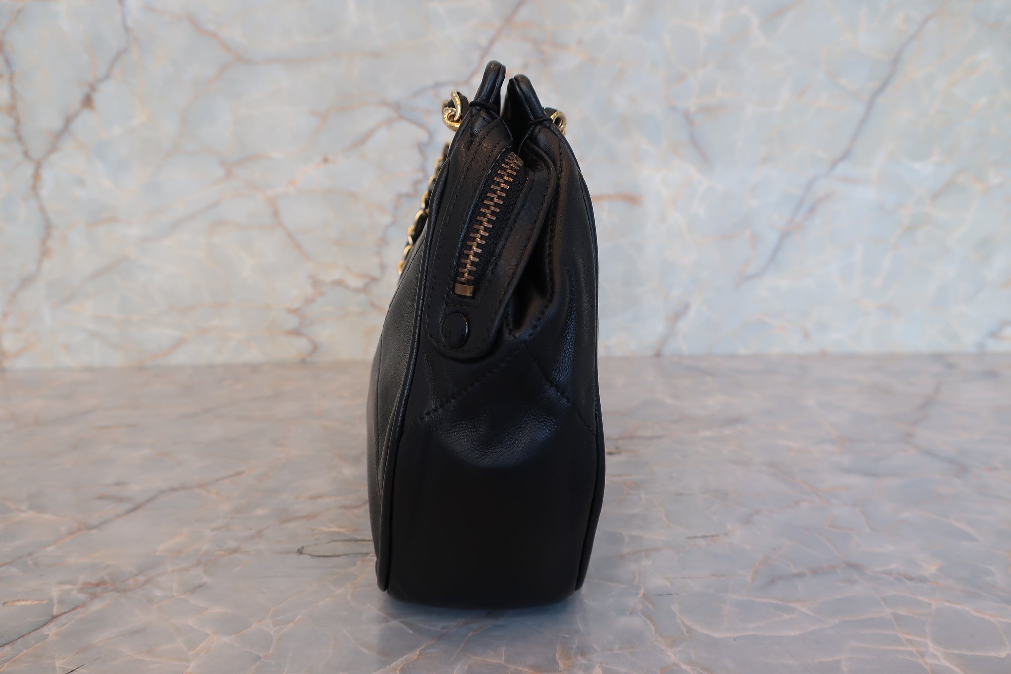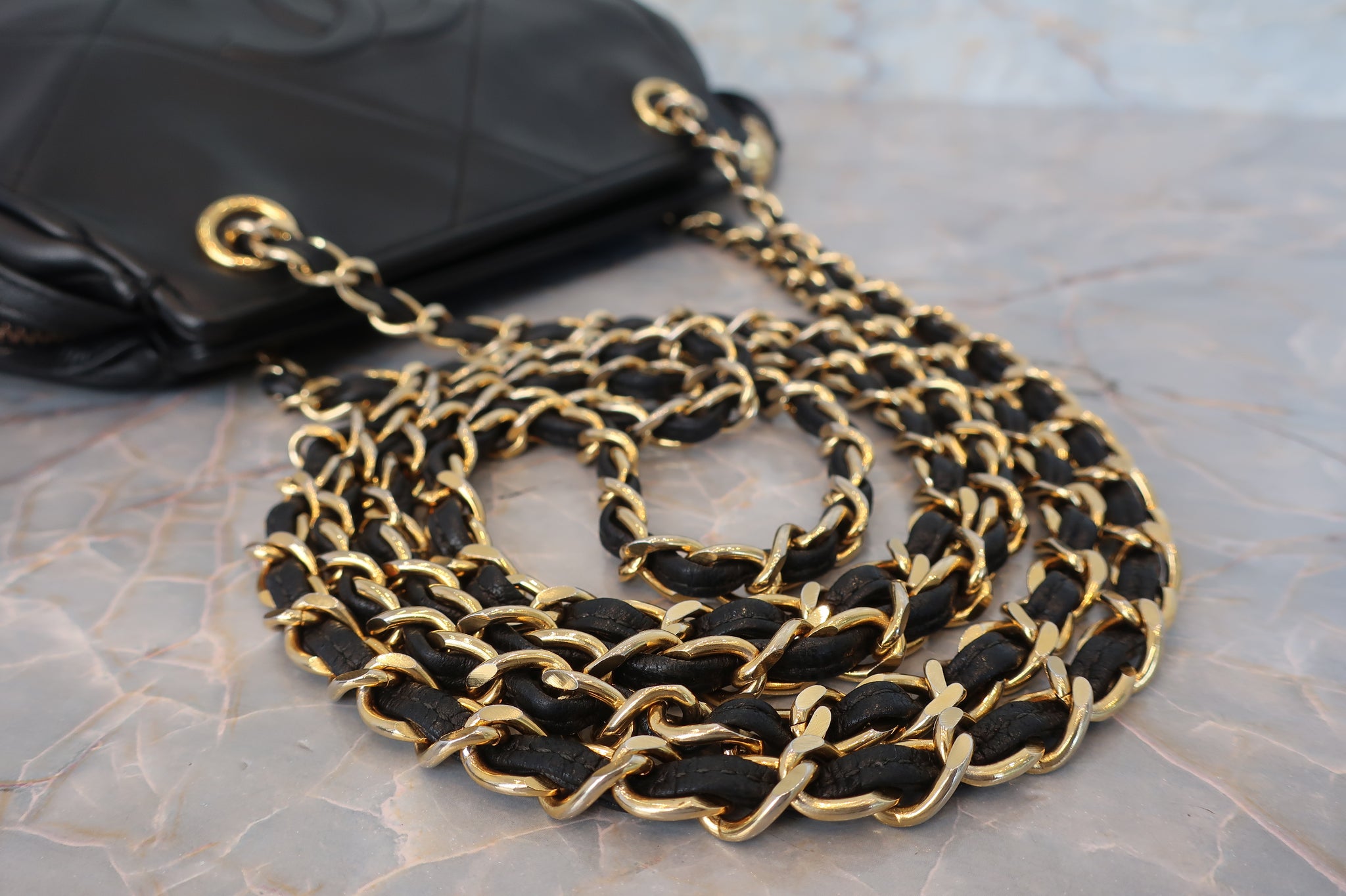 CHANEL/シャネル ココマークフリンジチェーンショルダーバッグ ラムスキン ブラック/ゴールド金具 ショルダーバッグ 800010014
