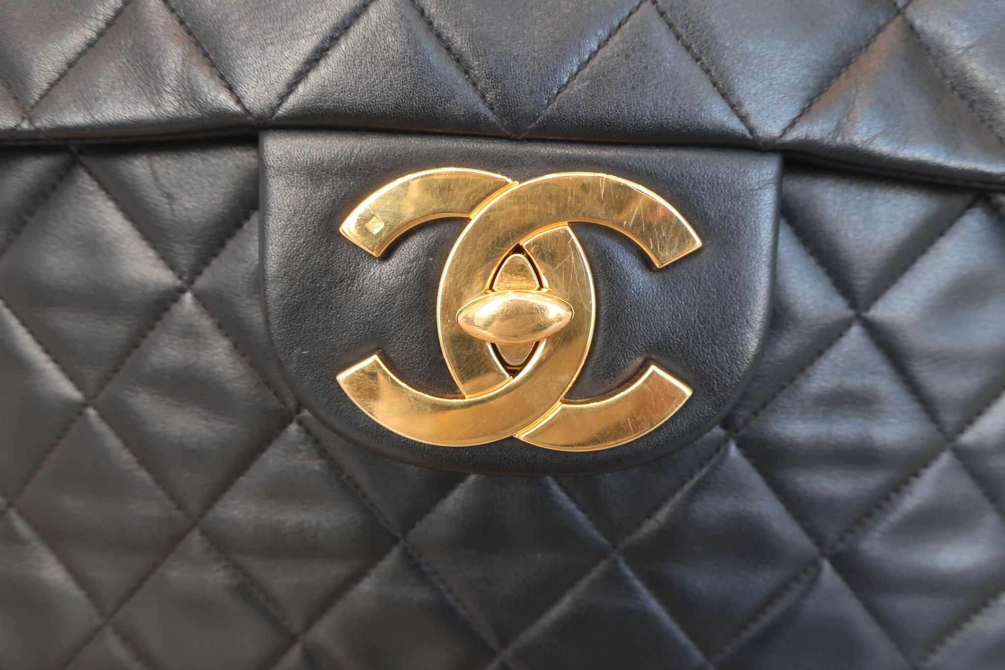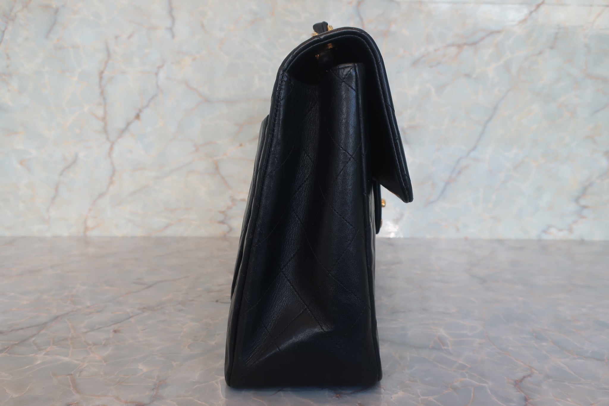 CHANEL/シャネル デカマトラッセシングルフラップチェーンショルダーバッグ ラムスキン ブラック/ゴールド金具 ショルダーバッグ 700120231