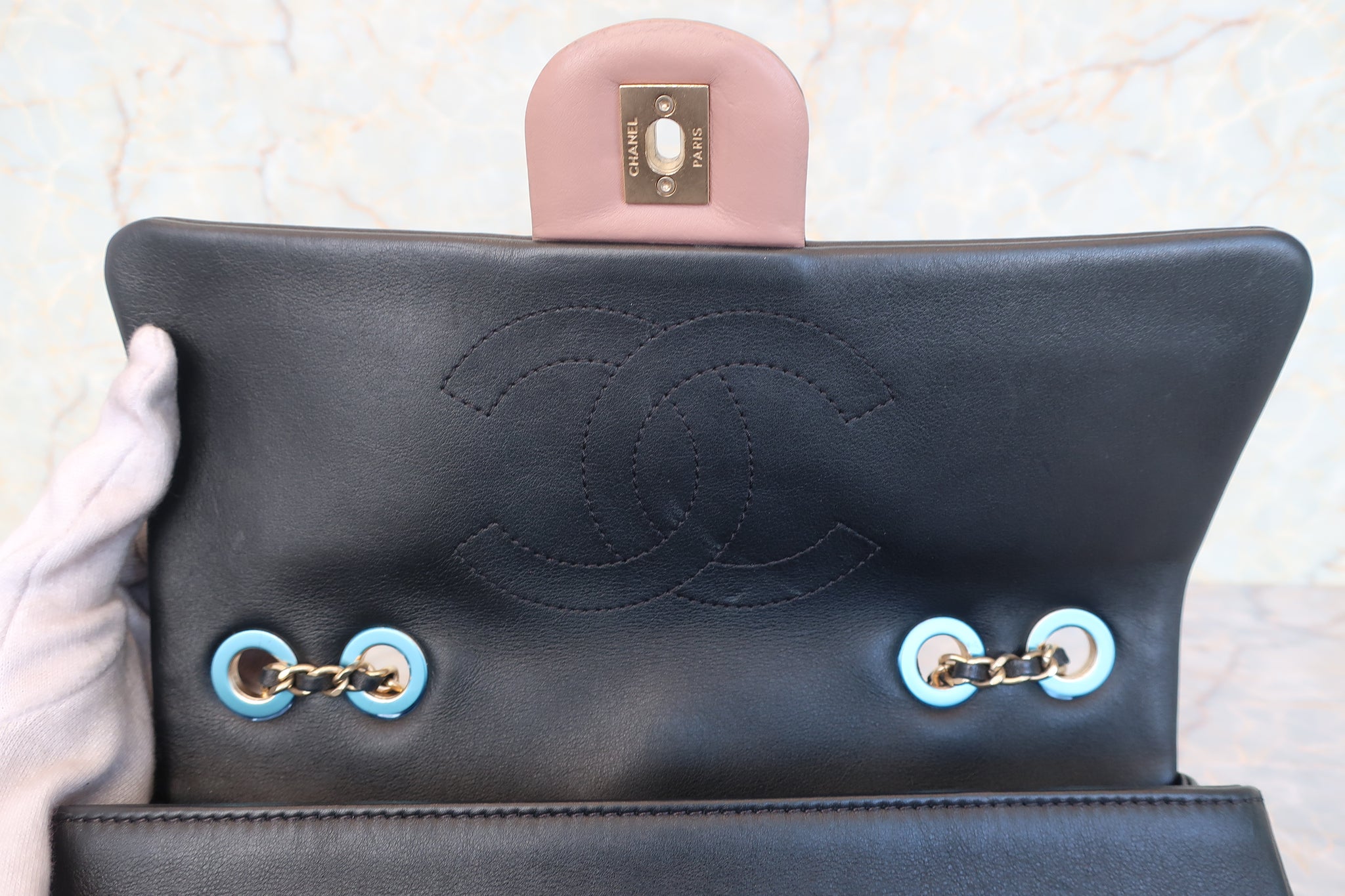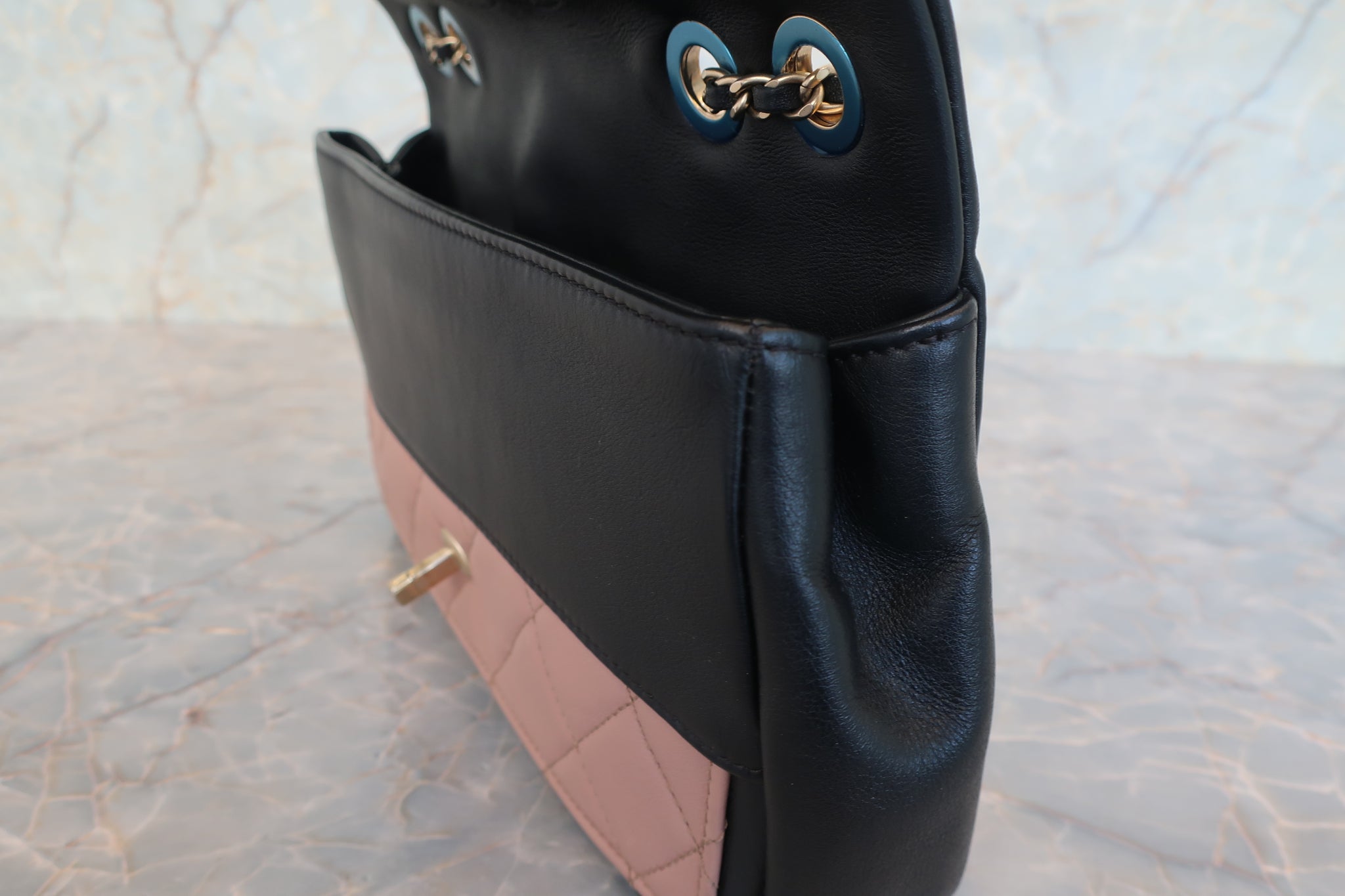 CHANEL/シャネル マトラッセチェーンショルダーバッグ ラムスキン ピンク/ブラック/ゴールド金具 ショルダーバッグ 800010018