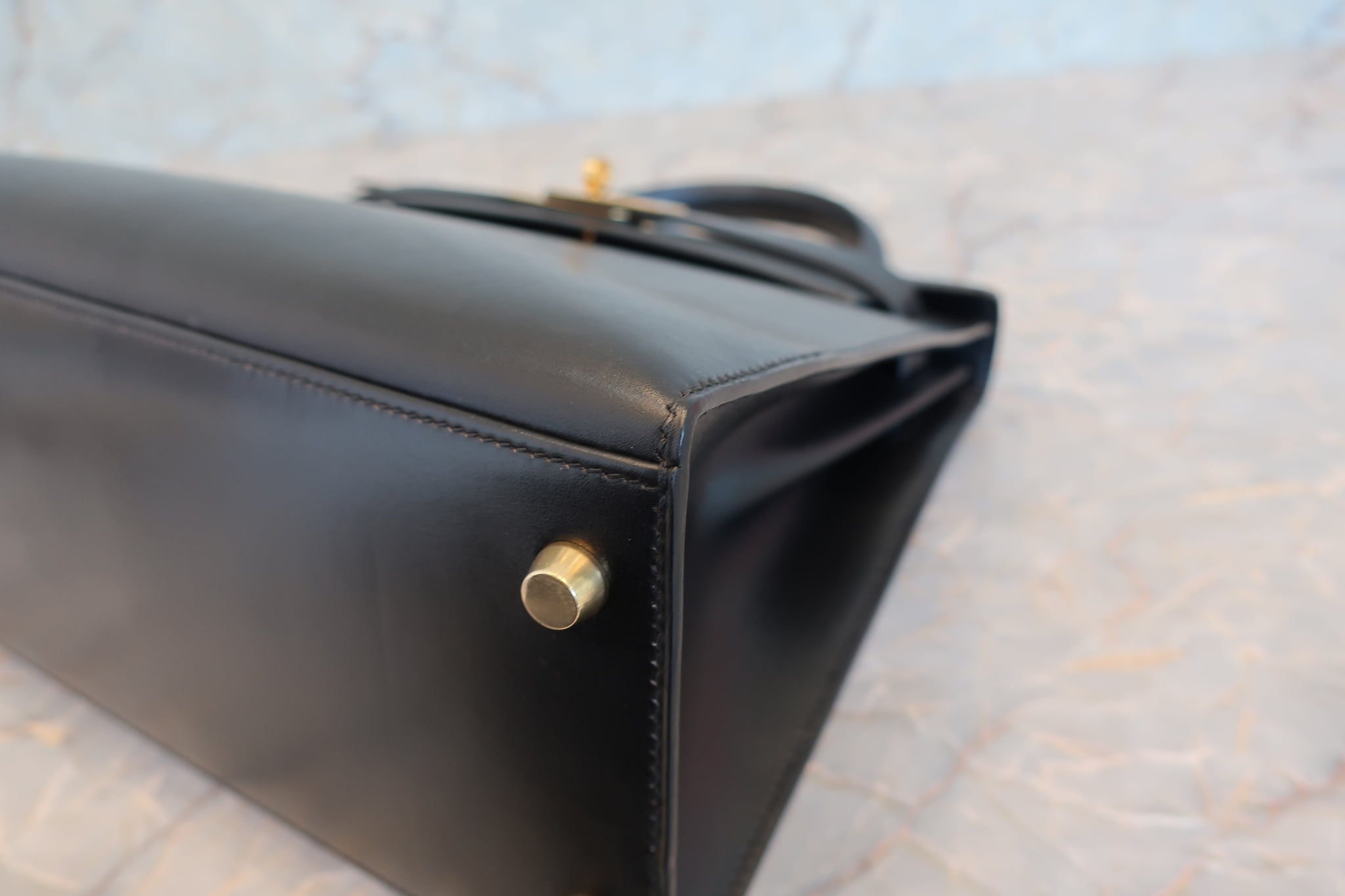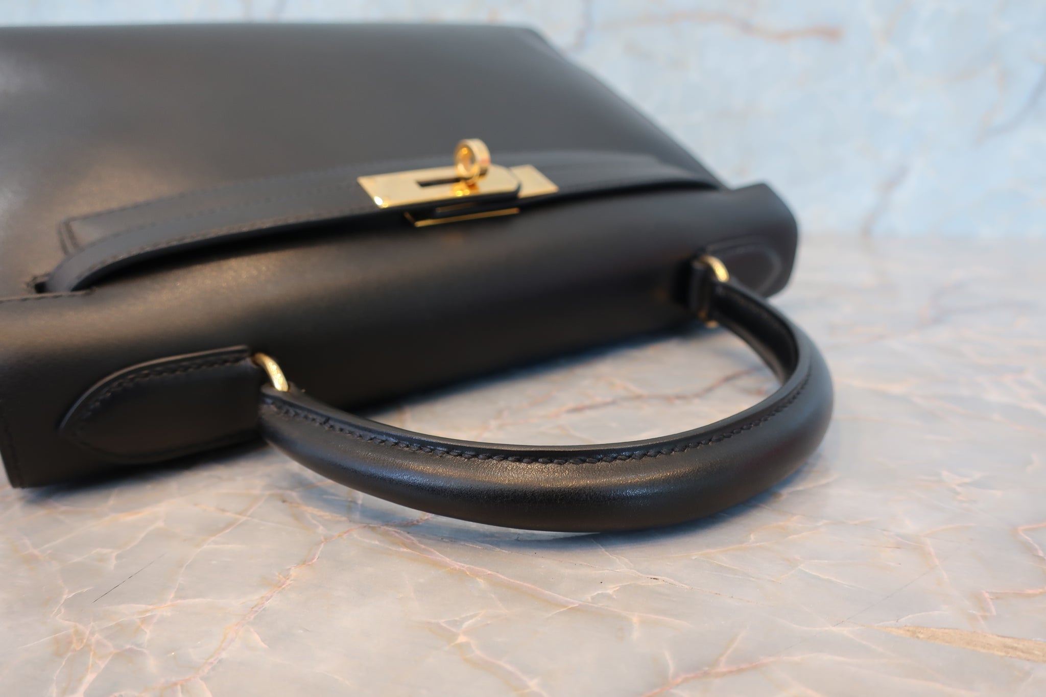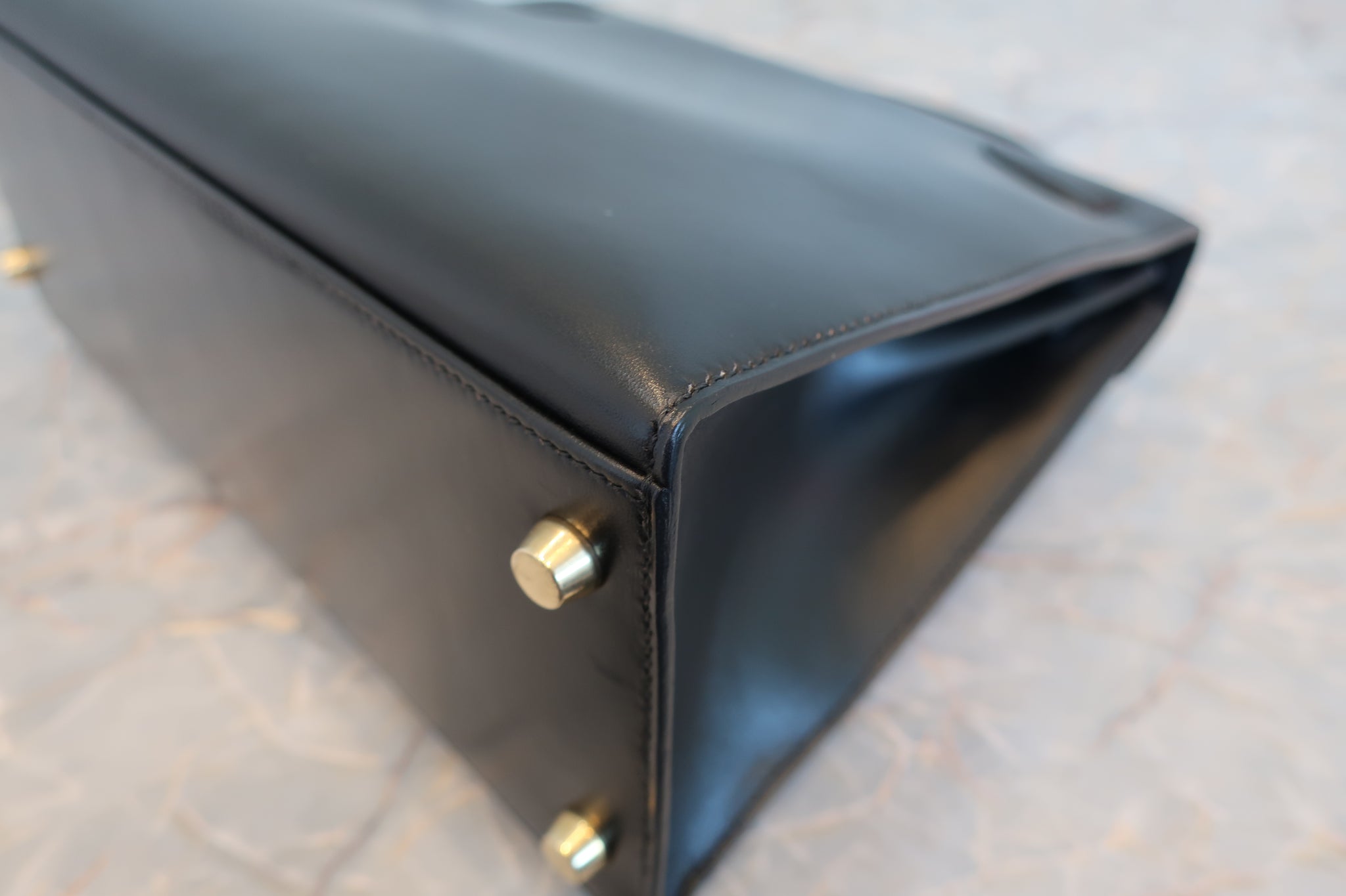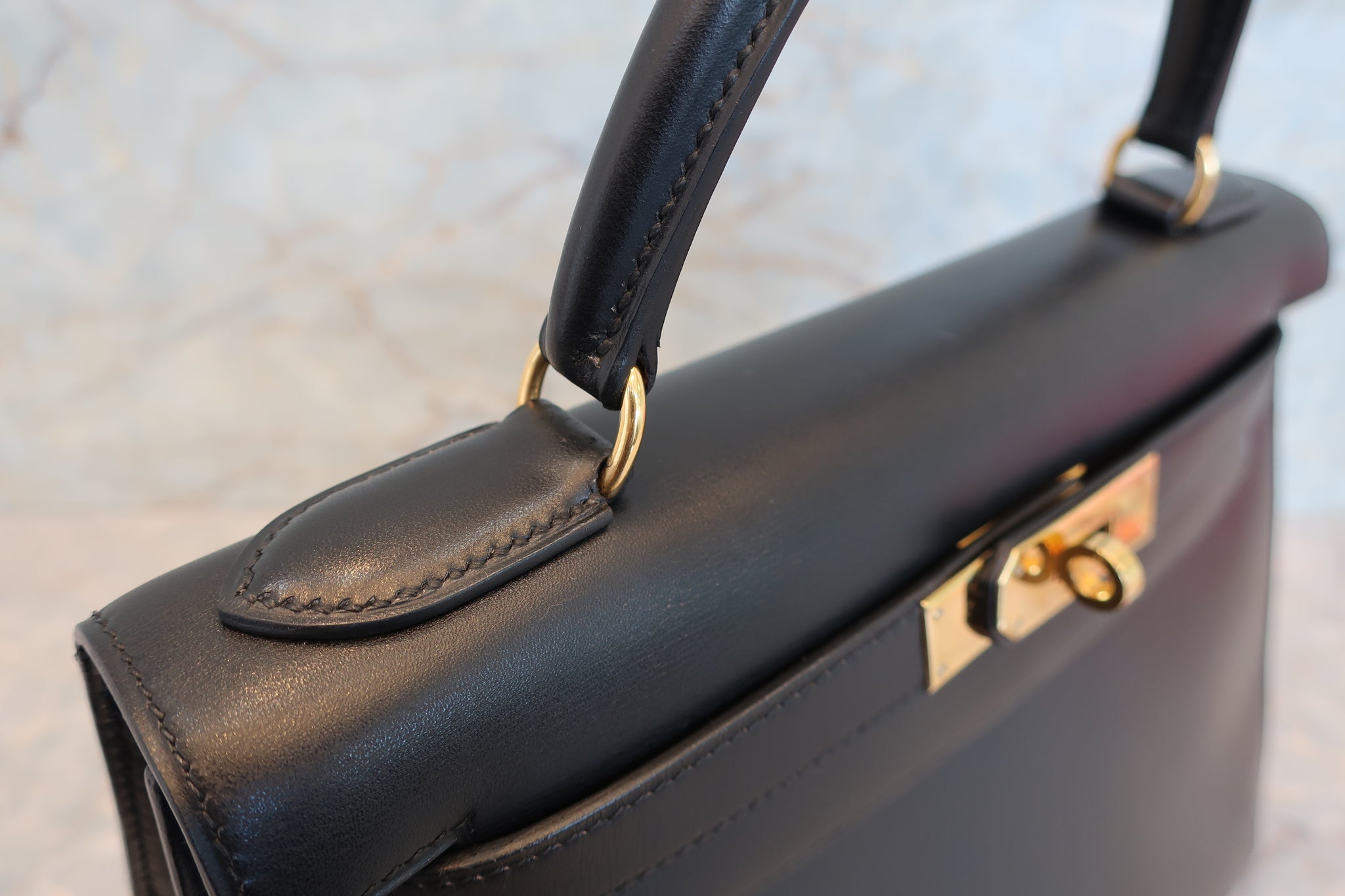HERMES/エルメス ケリー28 ボックスカーフ ブラック 〇Z刻印 ショルダーバッグ 700030286