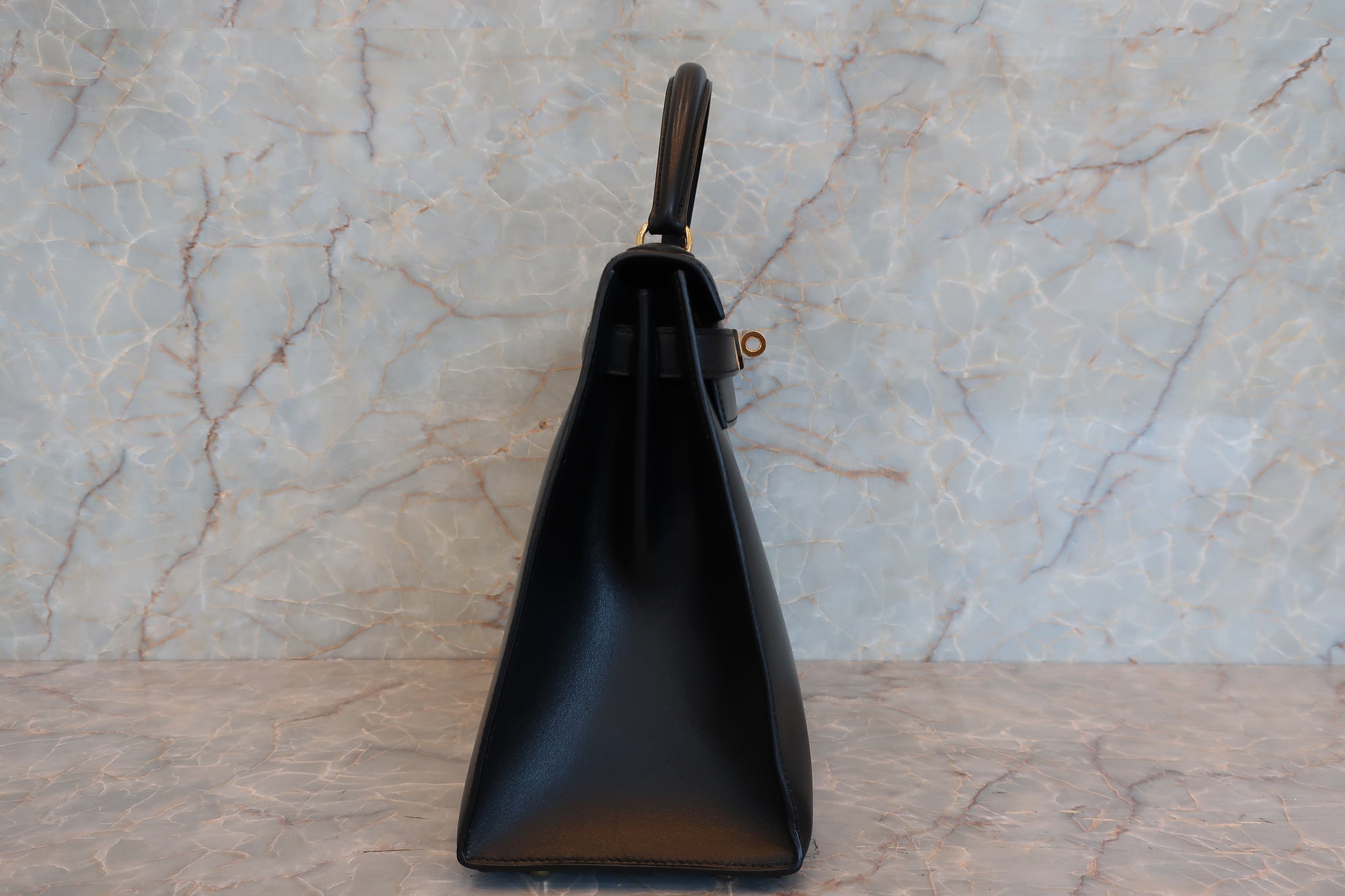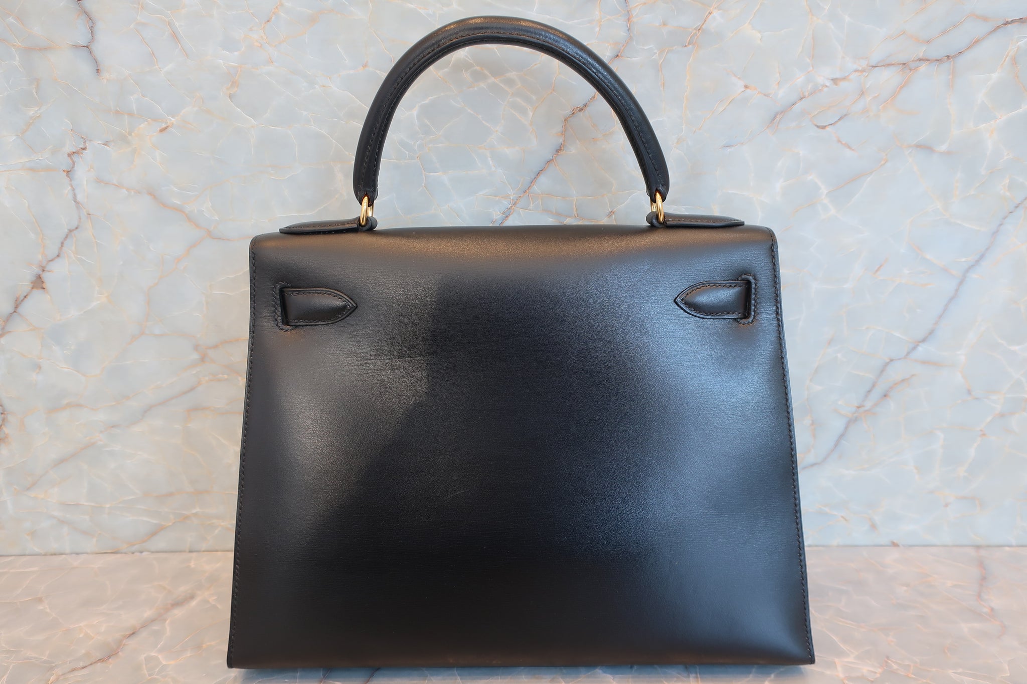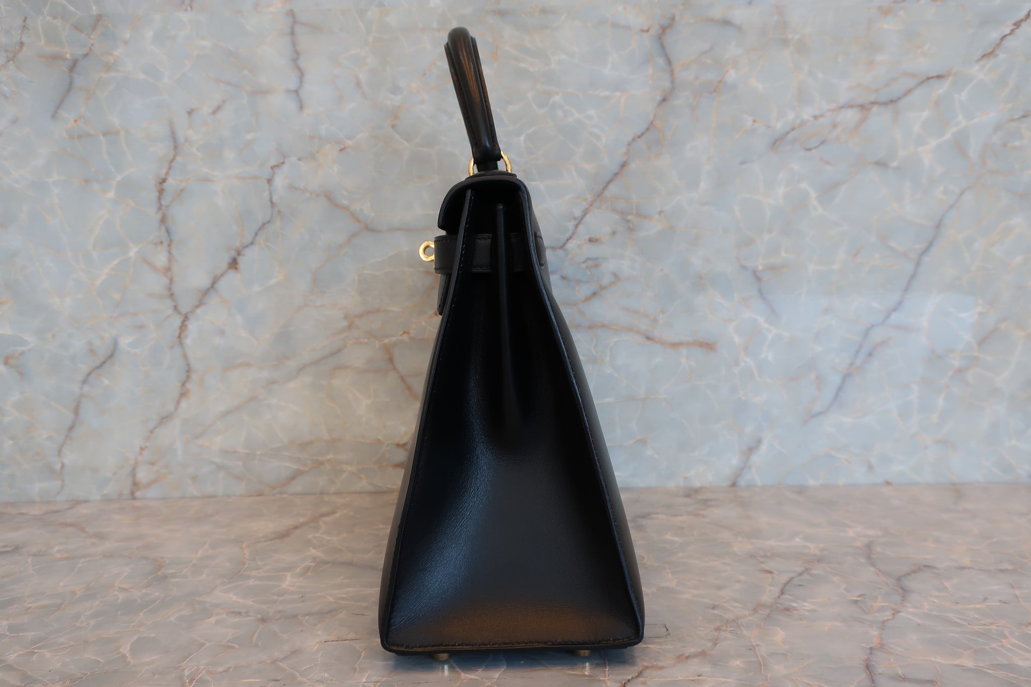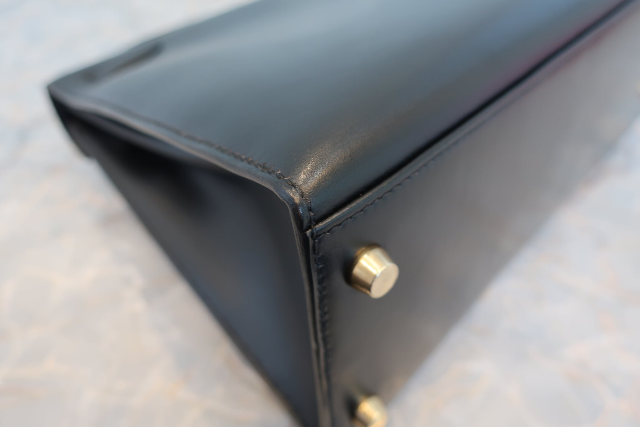 HERMES/エルメス ケリー28 ボックスカーフ ブラック 〇Z刻印 ショルダーバッグ 700030286