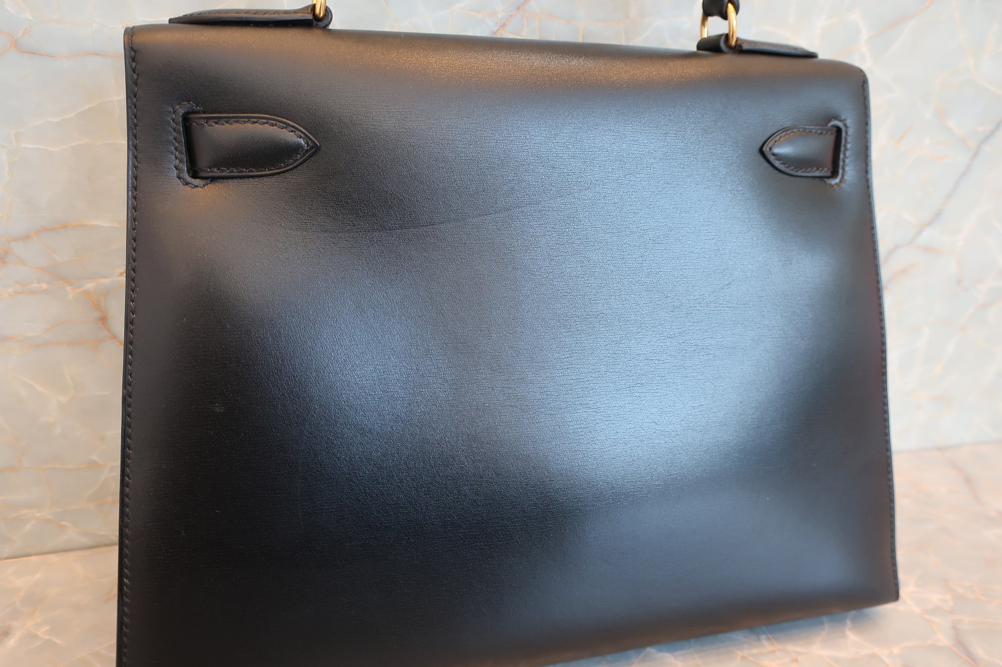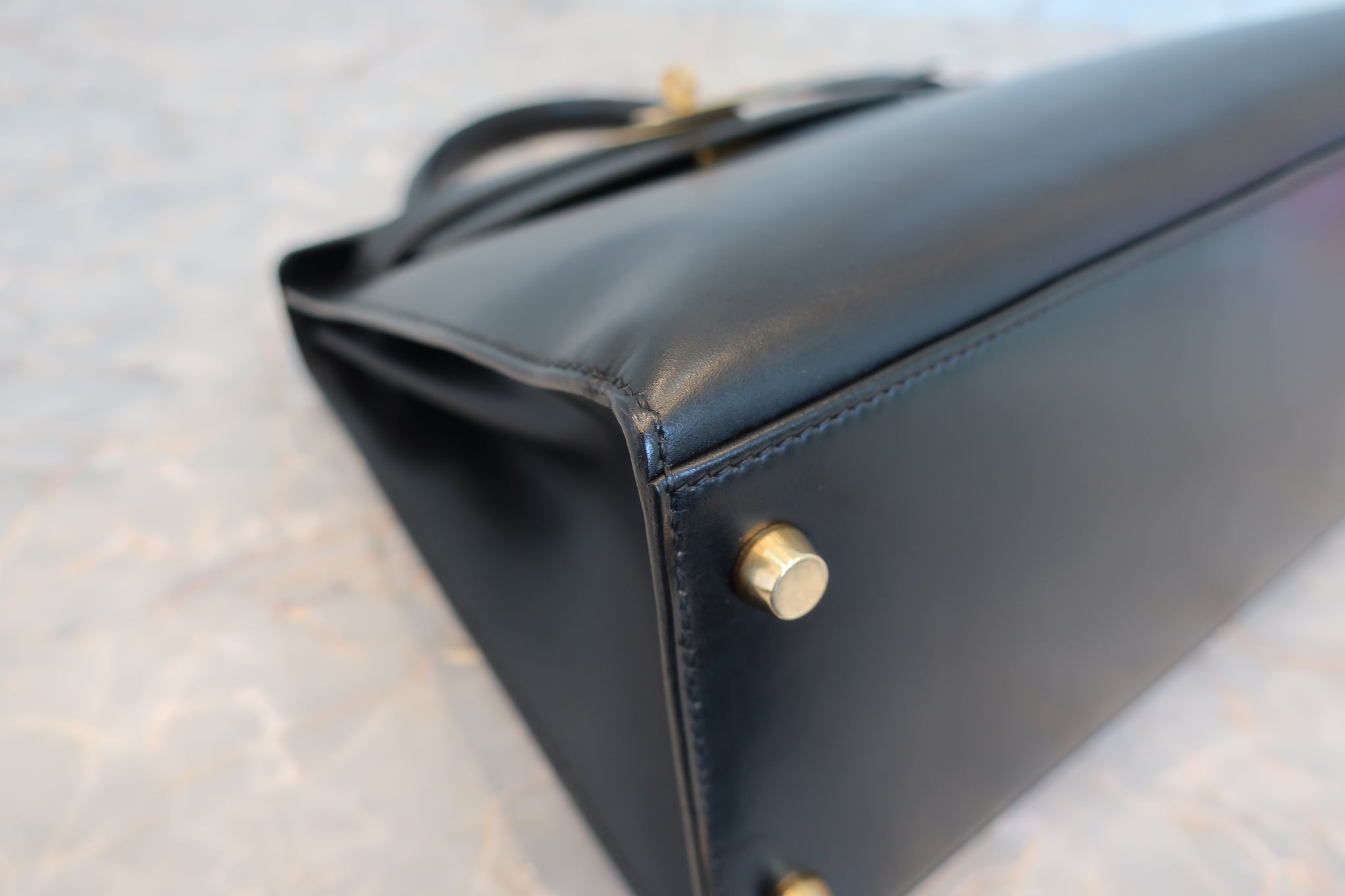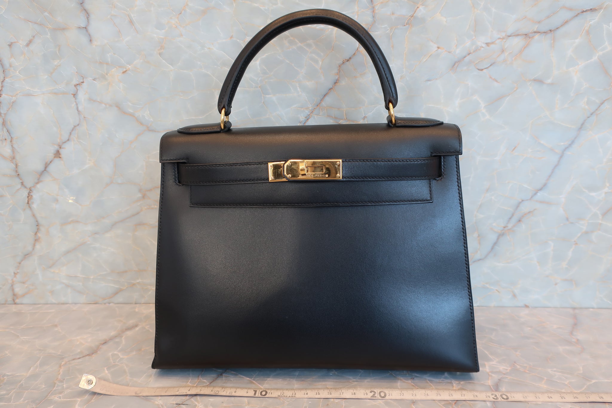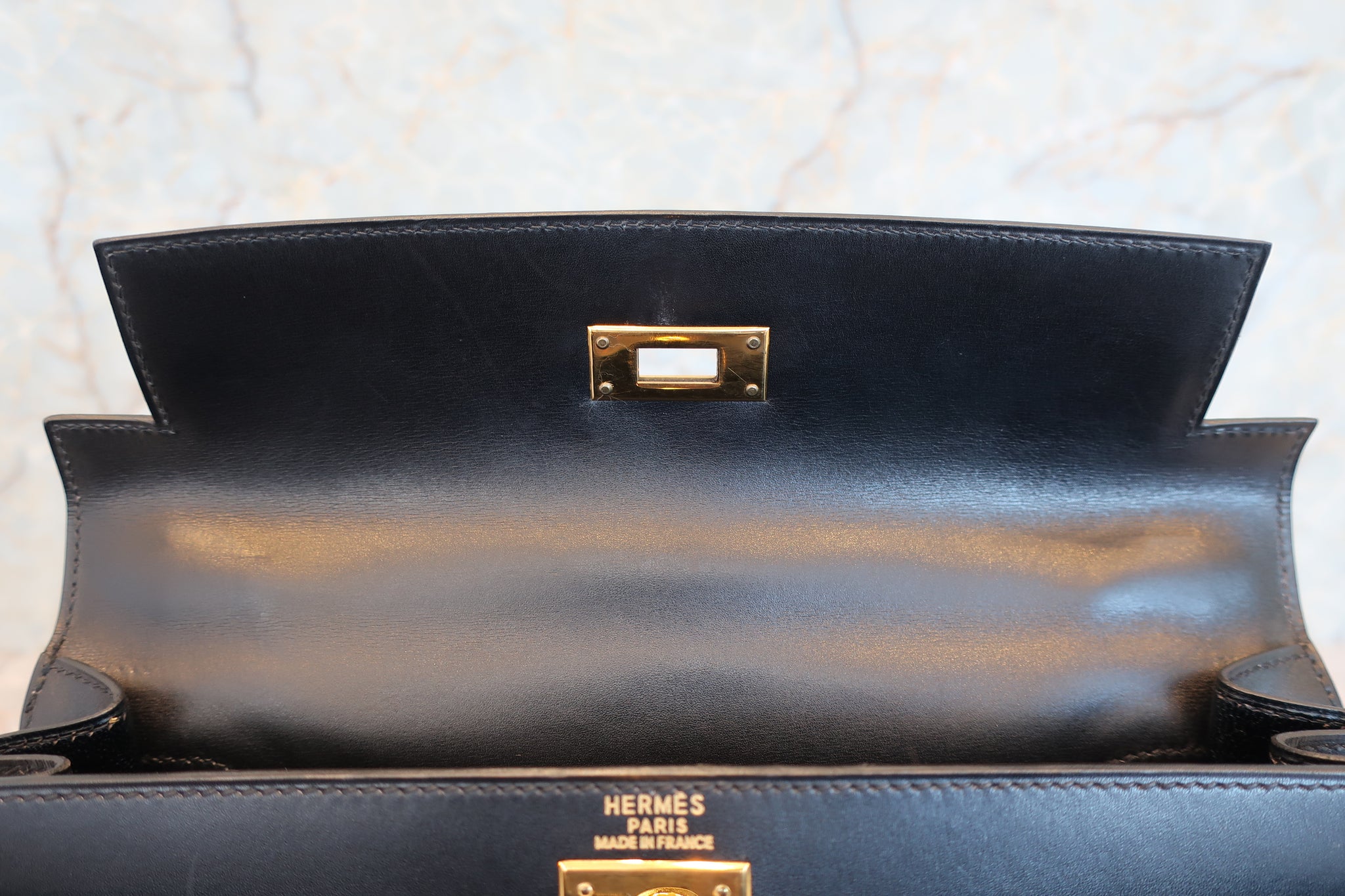 HERMES/エルメス ケリー28 ボックスカーフ ブラック 〇Z刻印 ショルダーバッグ 700030286