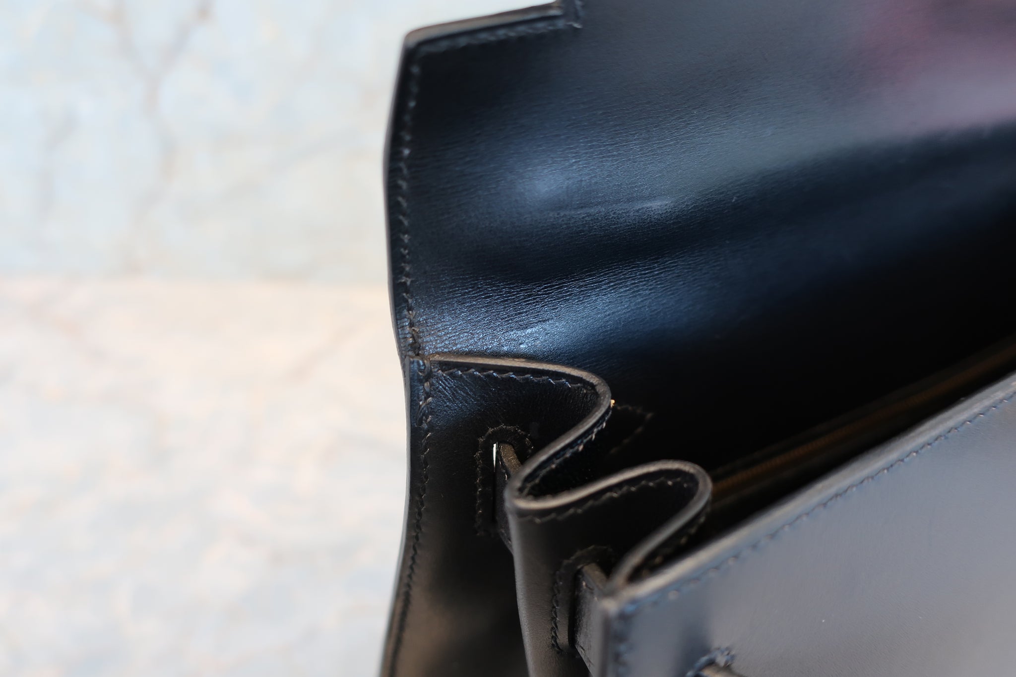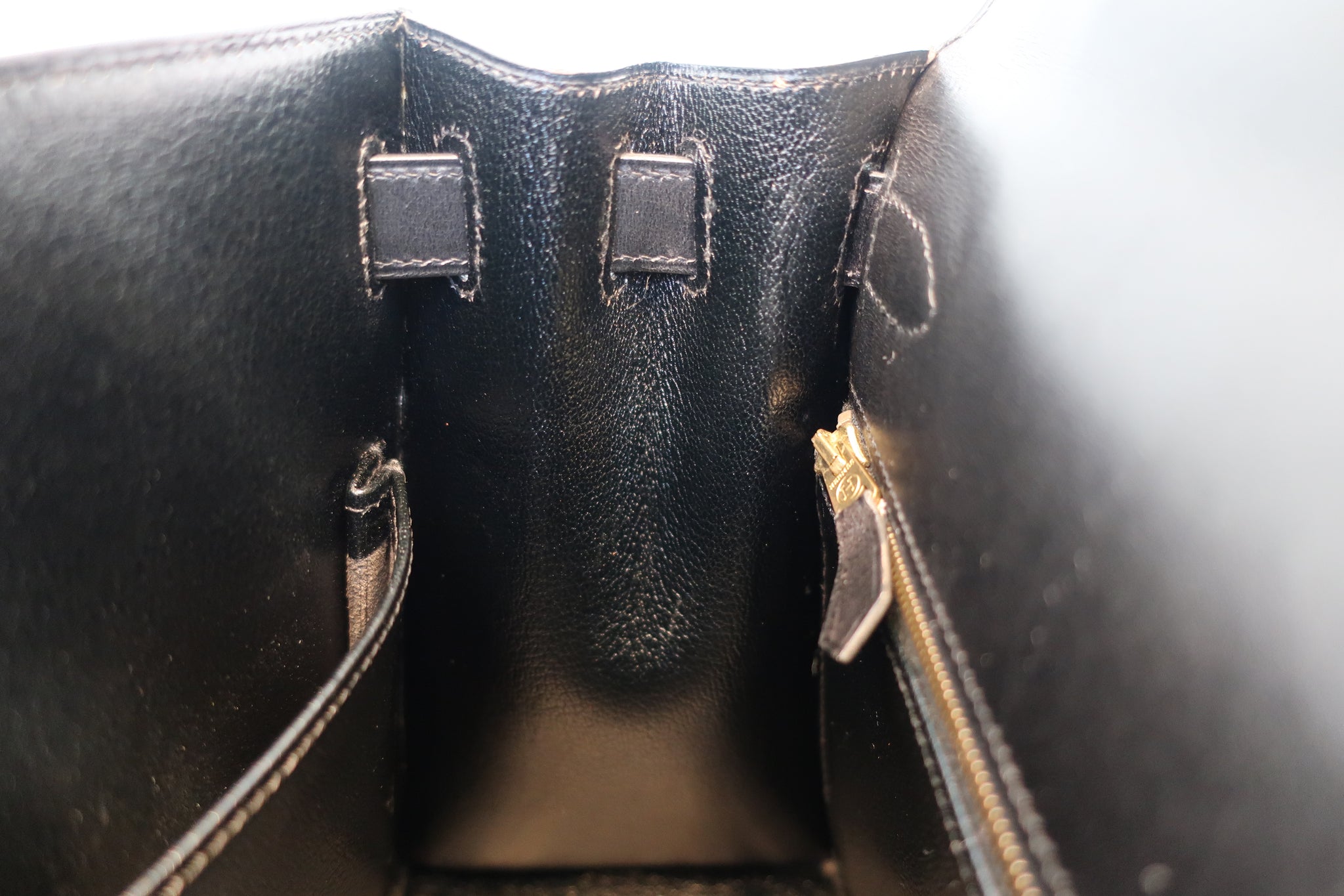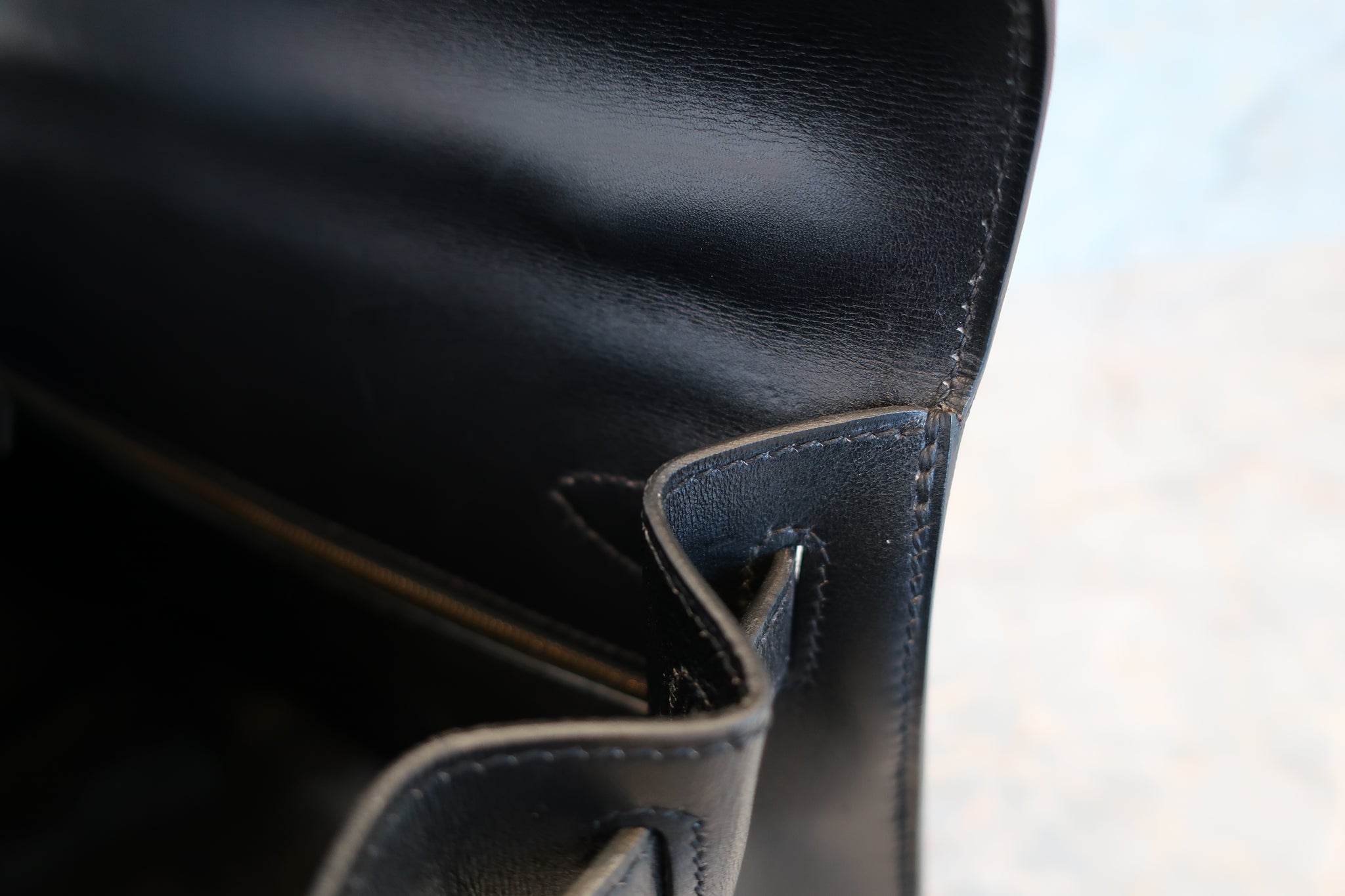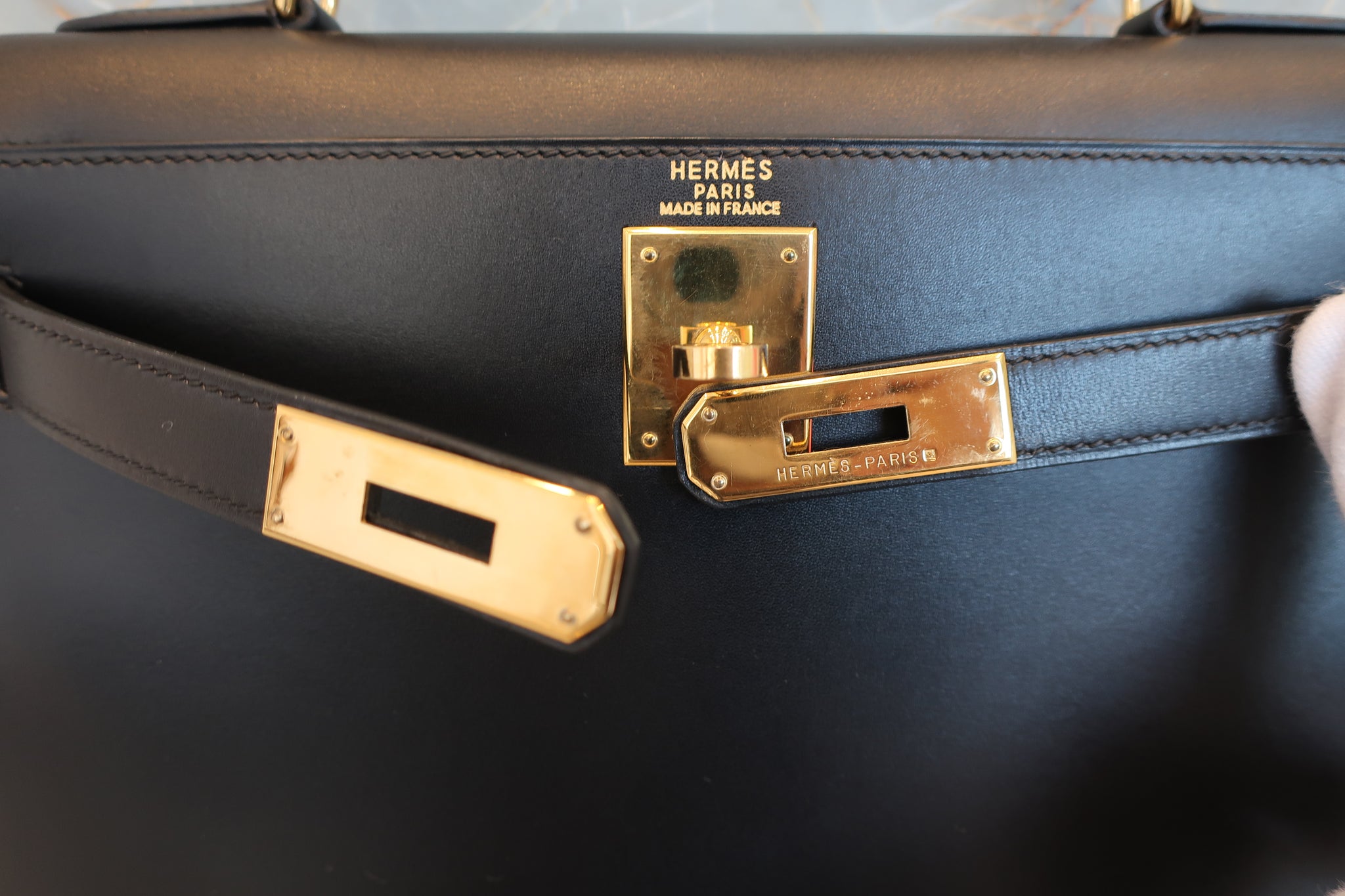 HERMES/エルメス ケリー28 ボックスカーフ ブラック 〇Z刻印 ショルダーバッグ 700030286