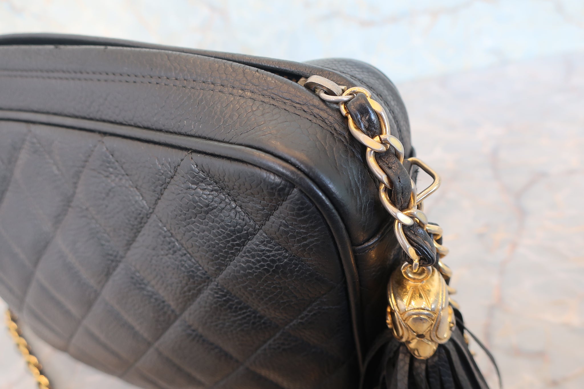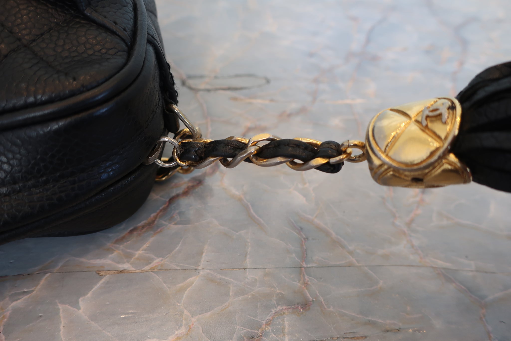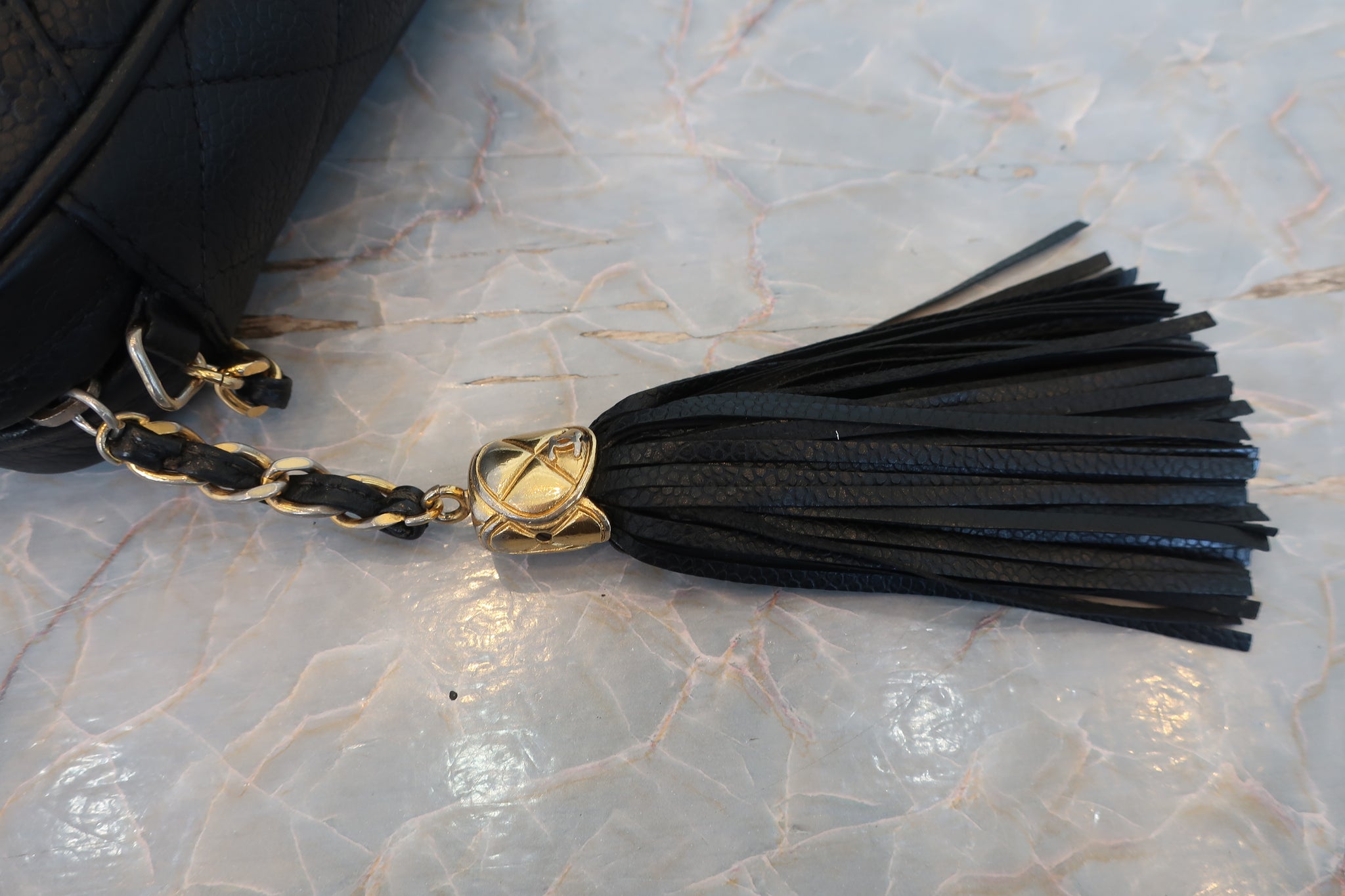 CHANEL/シャネル マトラッセフリンジチェーンショルダーバッグ キャビアスキン ブラック/ゴールド金具 ショルダーバッグ 800020096