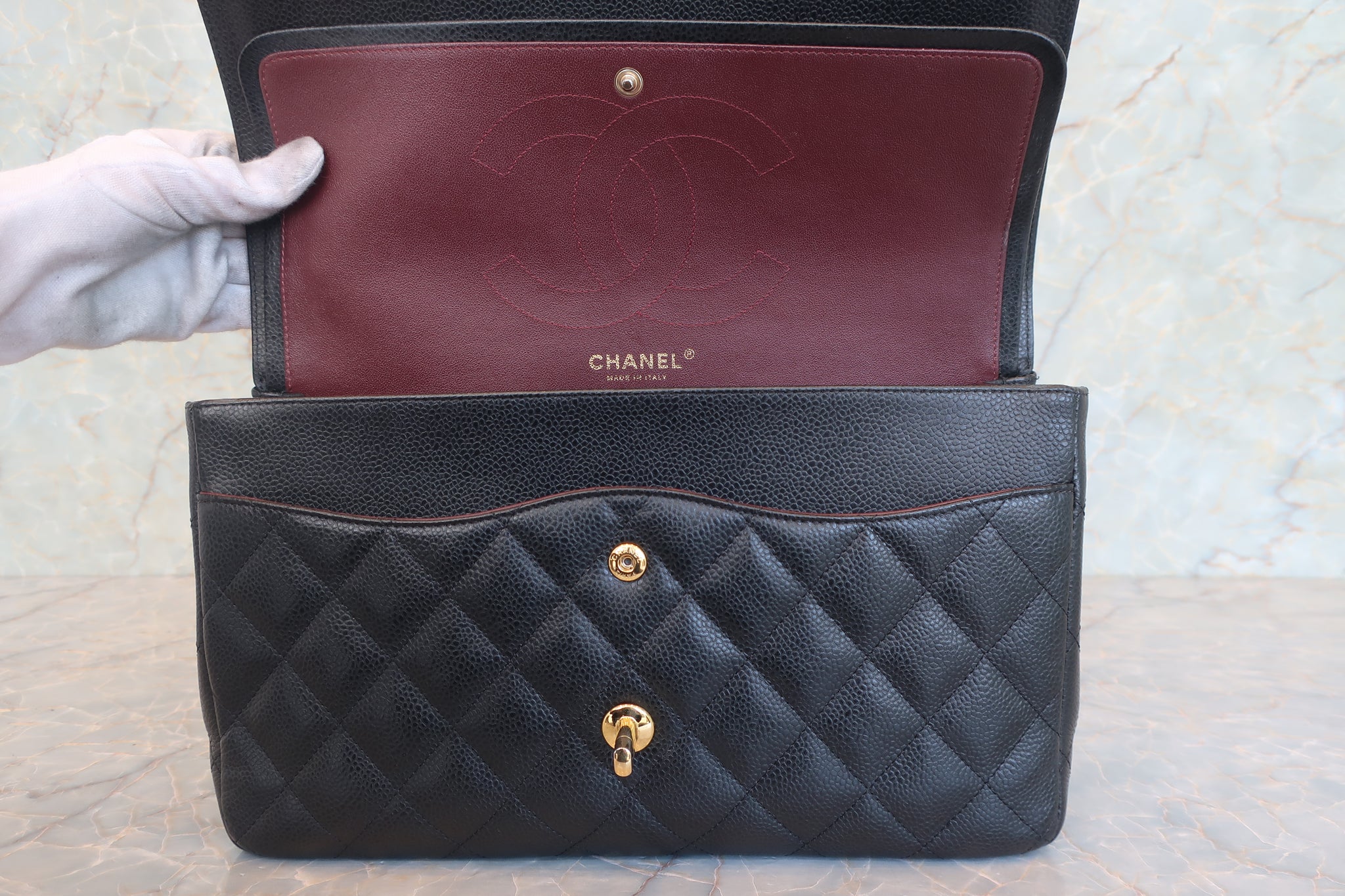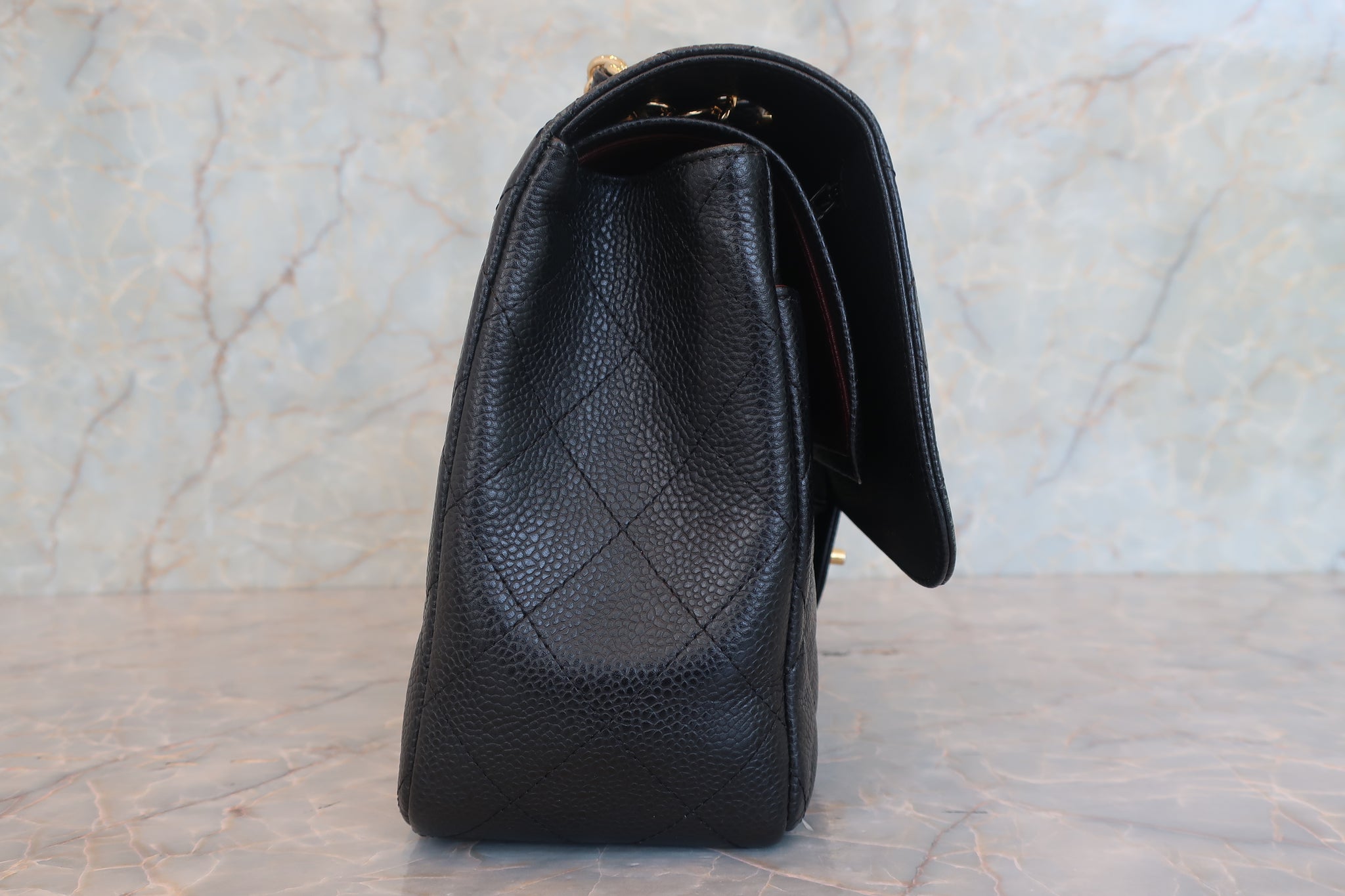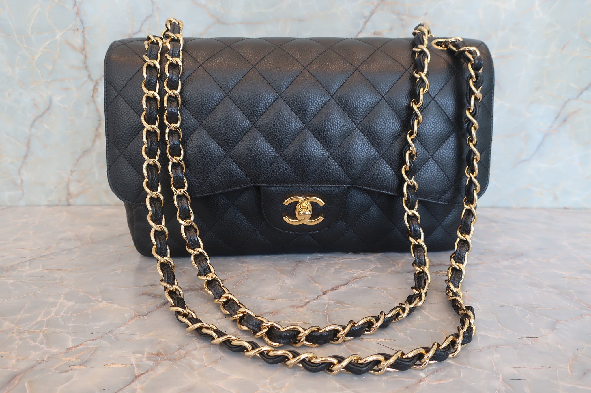 CHANEL/シャネル 中マトラッセWフラップチェーンショルダーバッグ キャビアスキン ブラック/ゴールド金具 ショルダーバッグ 800010131