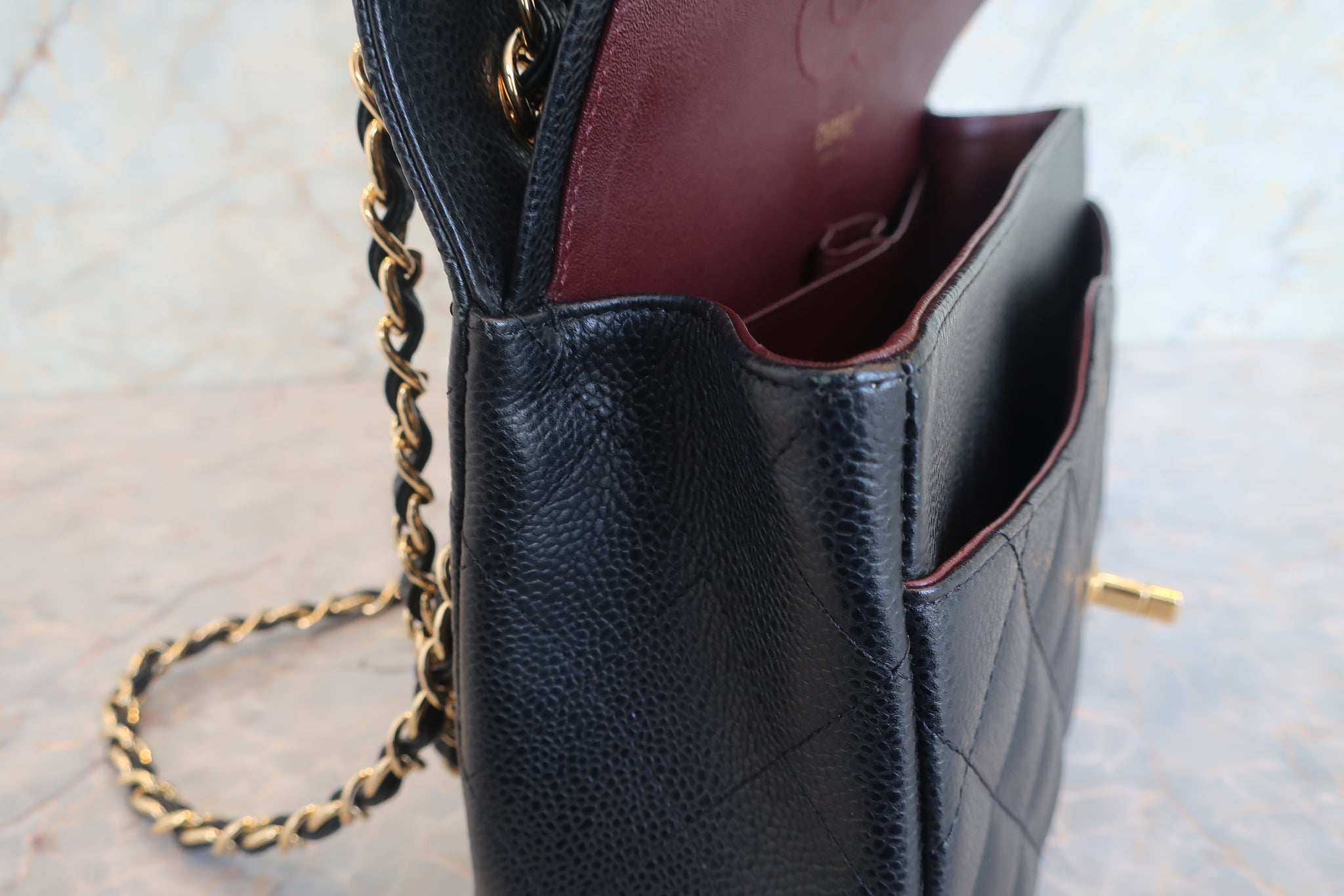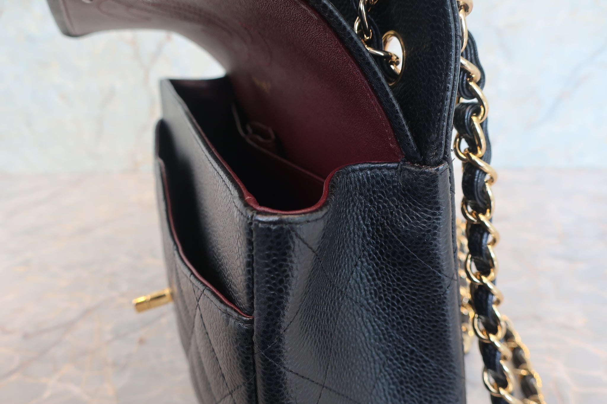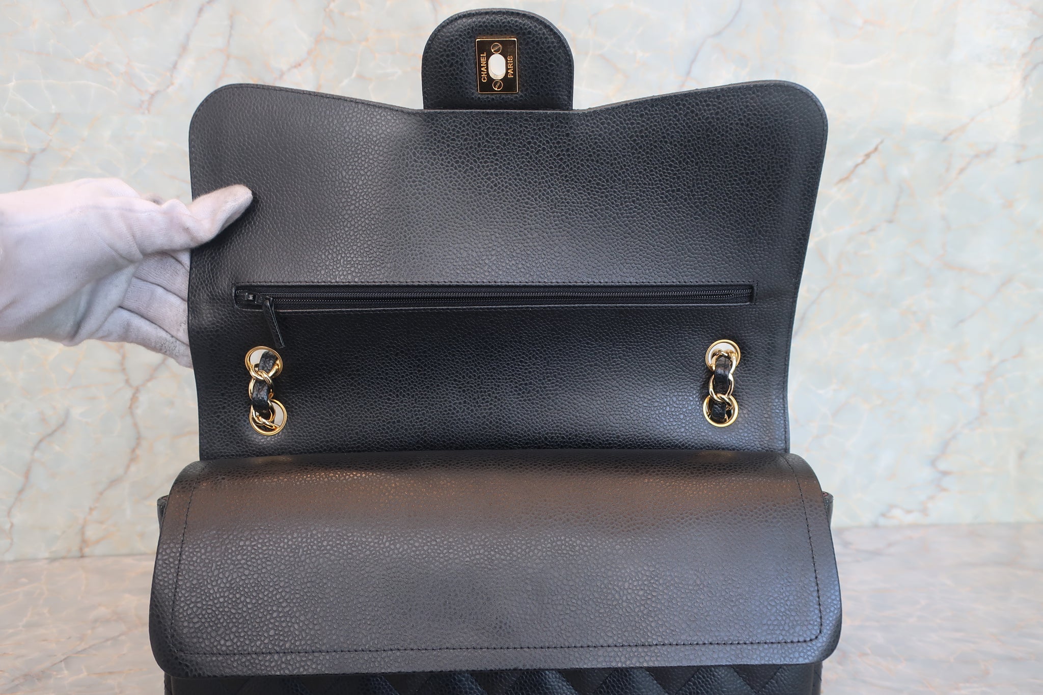 CHANEL/シャネル 中マトラッセWフラップチェーンショルダーバッグ キャビアスキン ブラック/ゴールド金具 ショルダーバッグ 800010131