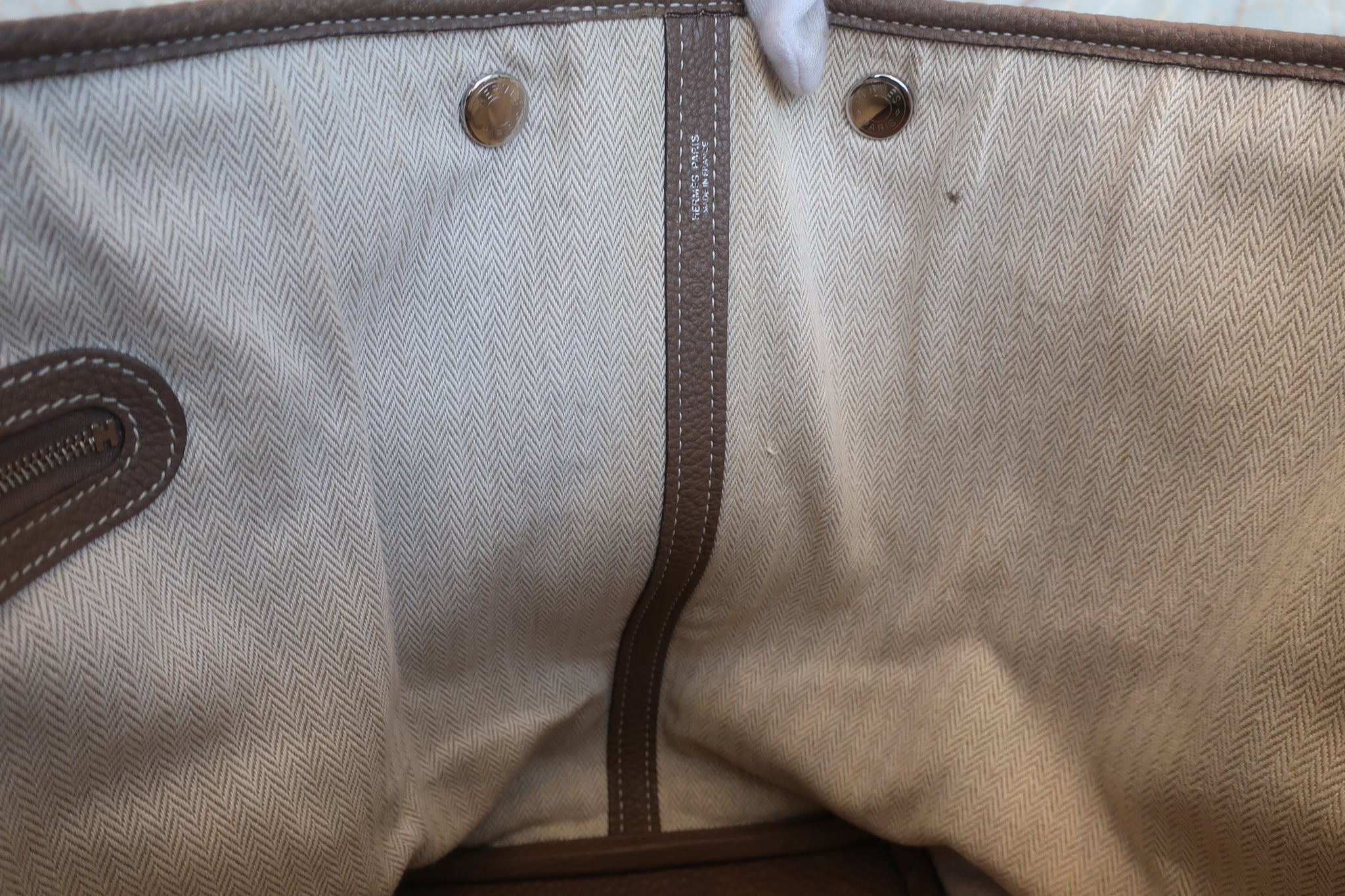 • 画像をギャラリービューアに読み込む, HERMES/エルメス ガーデンパーティPM ネゴンダ エトゥープ □O刻印 トートバッグ 800010077