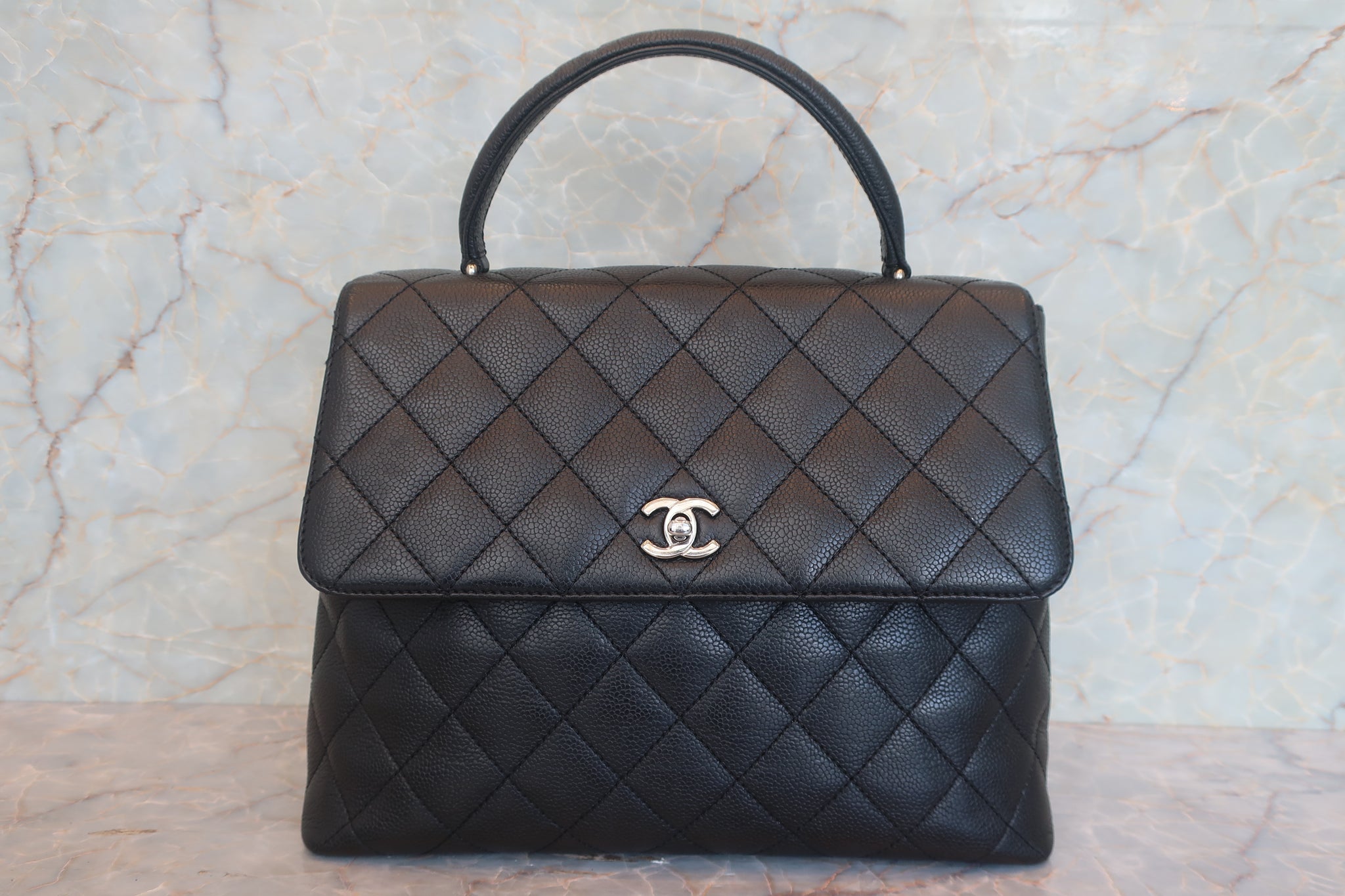 CHANEL Matelasse trapezoid hand bag Caviar skin Black/Silver hadware Hand bag 700120159