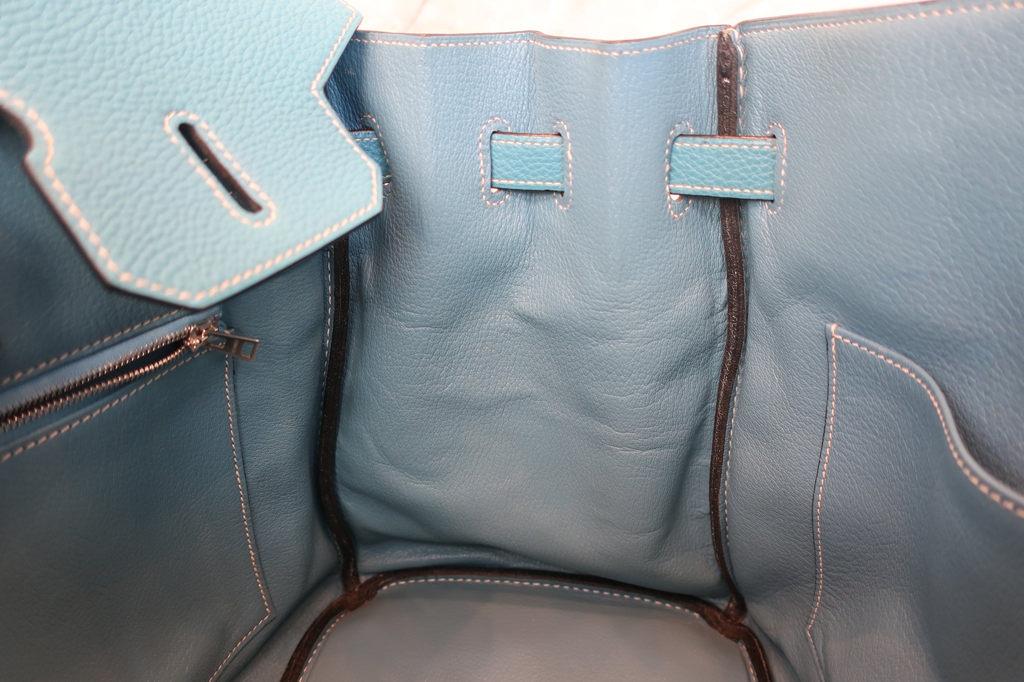 Inside:A few color transferring in the pockets・Missing zipper pull