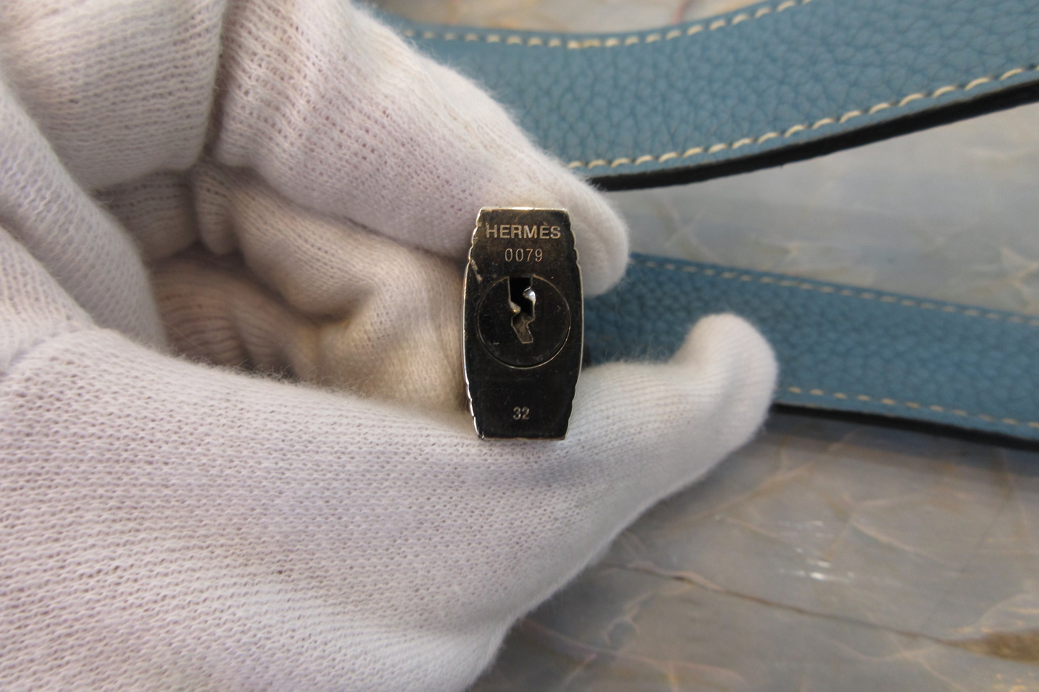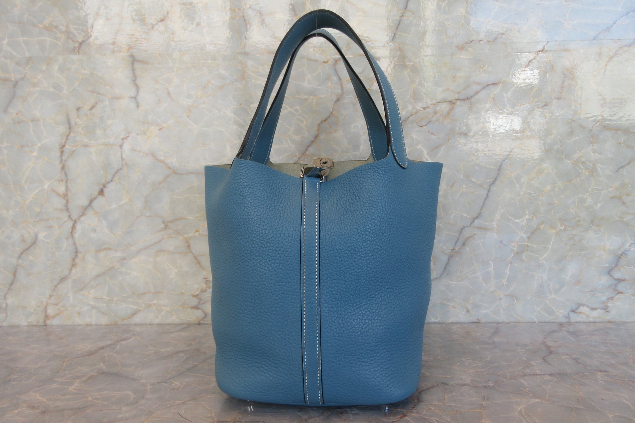 HERMES/エルメス ピコタンロックMM トリヨンクレマンス ブルージーン □M刻印 ハンドバッグ 700100150