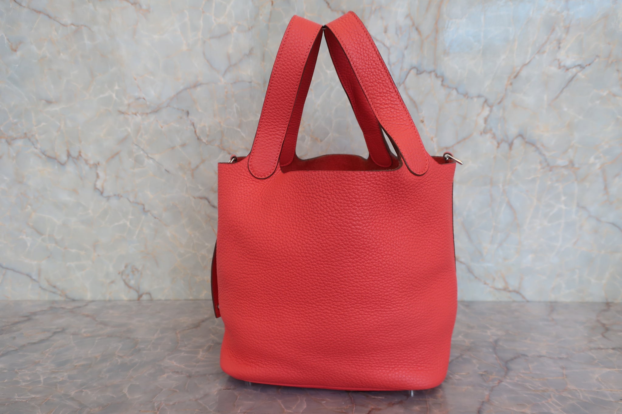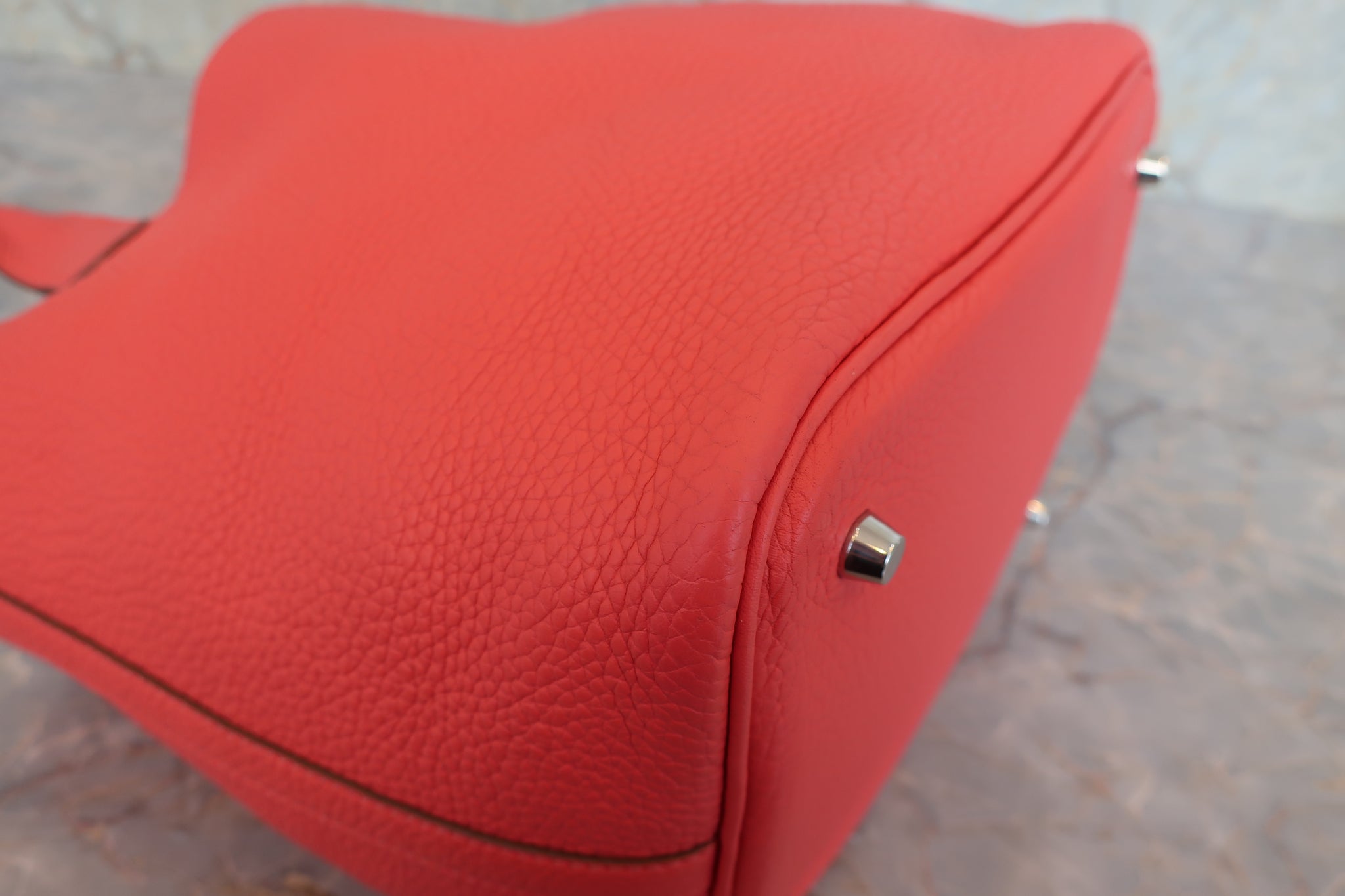 HERMES PICOTIN LOCK MM Clemence leather Rouge pivoine □R刻印 Hand bag 800040059